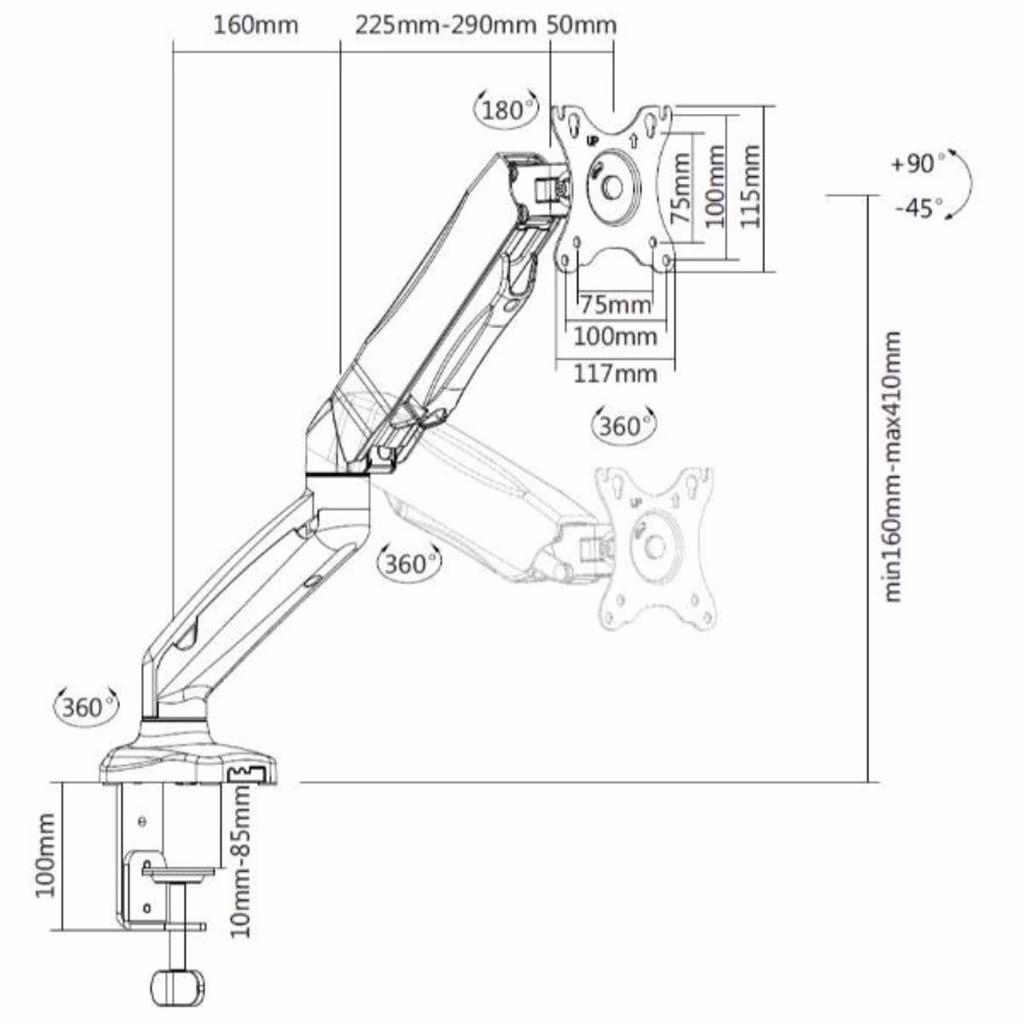 Ideale per vari ambienti, tra cui uffici, studi creativi e uffici domestici, questa staffa ottimizza lo spazio sulla scrivania e offre un aspetto elegante e organizzato grazie alla gestione dei cavi integrata. Il meccanismo a molla a gas aggiunge un tocco di interattività, consentendo di passare agevolmente dalla posizione seduta a quella eretta. Questo supporto interattivo per monitor da scrivania unisce funzionalità e design moderno e rappresenta la scelta ideale per chi cerca un miglioramento dello spazio di lavoro versatile e facile da usare.
