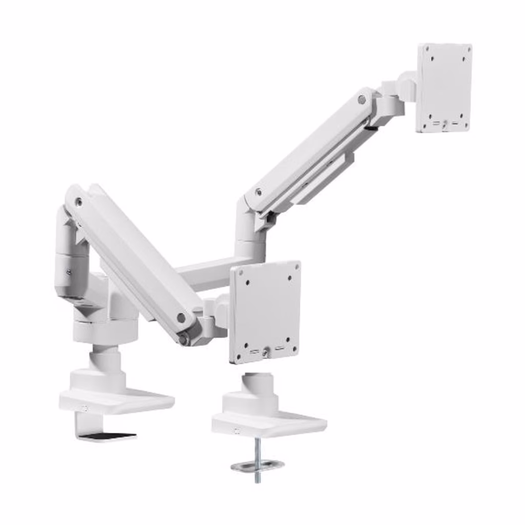 Caratterizzata da una struttura robusta, la staffa di montaggio da scrivania per monitor doppi per impieghi gravosi garantisce stabilità e un supporto sicuro per monitor di peso variabile. Il design a doppio braccio consente il movimento indipendente di ciascun monitor, offrendo flessibilità nel posizionamento e consentendo una disposizione ergonomica ottimale. Che si tratti di un professionista che lavora in multitasking con più applicazioni o di un giocatore alla ricerca di un'esperienza coinvolgente con il doppio monitor, questo supporto soddisfa una varietà di esigenze.