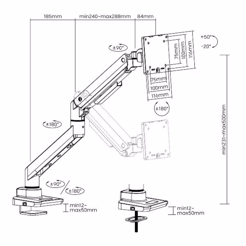 Realizzata con una struttura robusta, la staffa per montaggio su scrivania per impieghi gravosi garantisce stabilità e un supporto sicuro per monitor di peso variabile. Il design regolabile consente un posizionamento versatile, per soddisfare le esigenze di professionisti, creativi e giocatori. Che si tratti di attività complesse, montaggio di video o giochi, questo supporto offre flessibilità nella disposizione e nell'allineamento dei monitor più grandi.