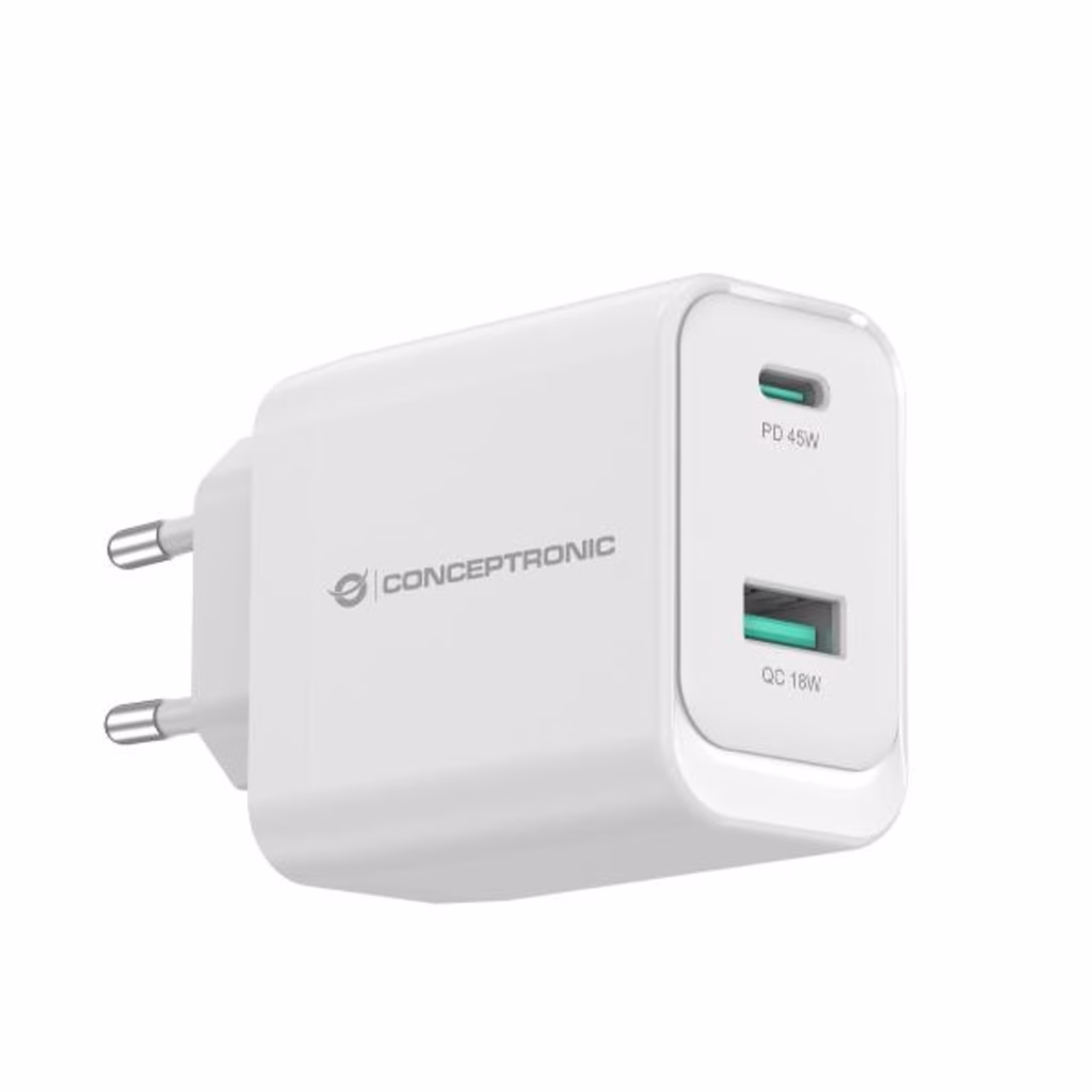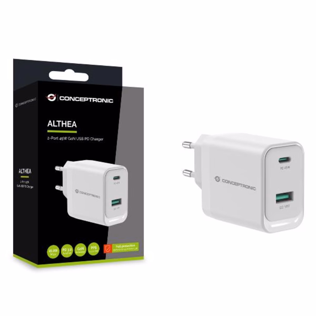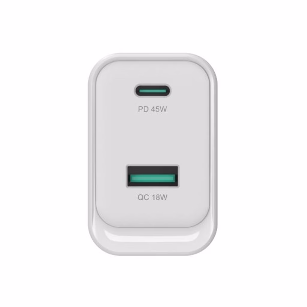 Questo caricabatterie sfrutta la tecnologia avanzata del nitruro di gallio (GaN) per fornire fino a 45 W di potenza totale, assicurando una ricarica più rapida ed efficiente. È dotato di una selezione versatile di porte, con 1 porta USB-C che supporta USB Power Delivery (PD) 3.0 e 1 porta USB-A con Quick Charge (QC) 3.0, che consente la ricarica simultanea di più dispositivi con esigenze di alimentazione diverse. Il caricabatterie supporta un'ampia gamma di opzioni di uscita da 5,0V a 20,0V, garantendo la compatibilità con una varietà di dispositivi, tra cui smartphone e laptop. La sicurezza è garantita dalle protezioni integrate contro il sovraccarico, il cortocircuito e il surriscaldamento. Inoltre, incorpora le tecnologie USB Power Delivery (PD) 3.0 e Quick Charge (QC) 3.0 per la ricarica rapida, oltre alla conformità con l'alimentatore programmabile (PPS) per massimizzare l'efficienza e ridurre al minimo la generazione di calore.