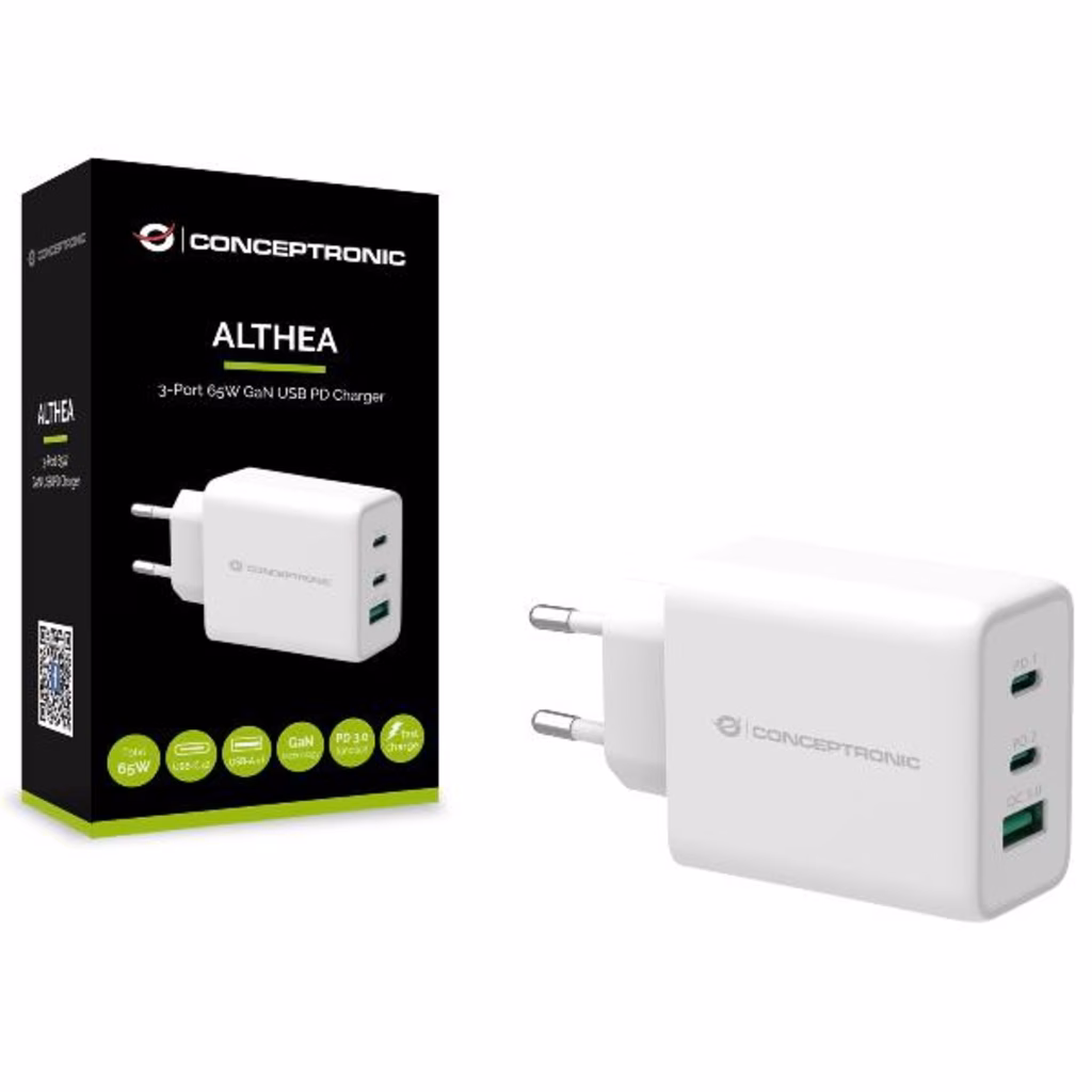 Il caricabatterie USB ALTHEA12W offre una ricarica efficiente e veloce, grazie alle 2 porte USB Type-C con tecnologia Power Delivery (PD) 3.0. Rileva e ricarica automaticamente dispositivi come MacBook, Nintendo Switch, iPad, iPhone, Samsung ecc. a una velocità massima di 65W.
