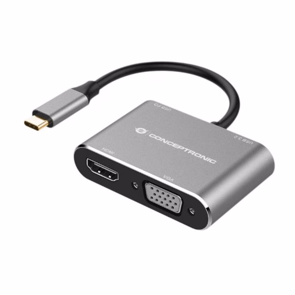 - Adattatore multiplo 4-in-1 da USB-C a HDMI/VGA/USB-C PD/USB 3.0