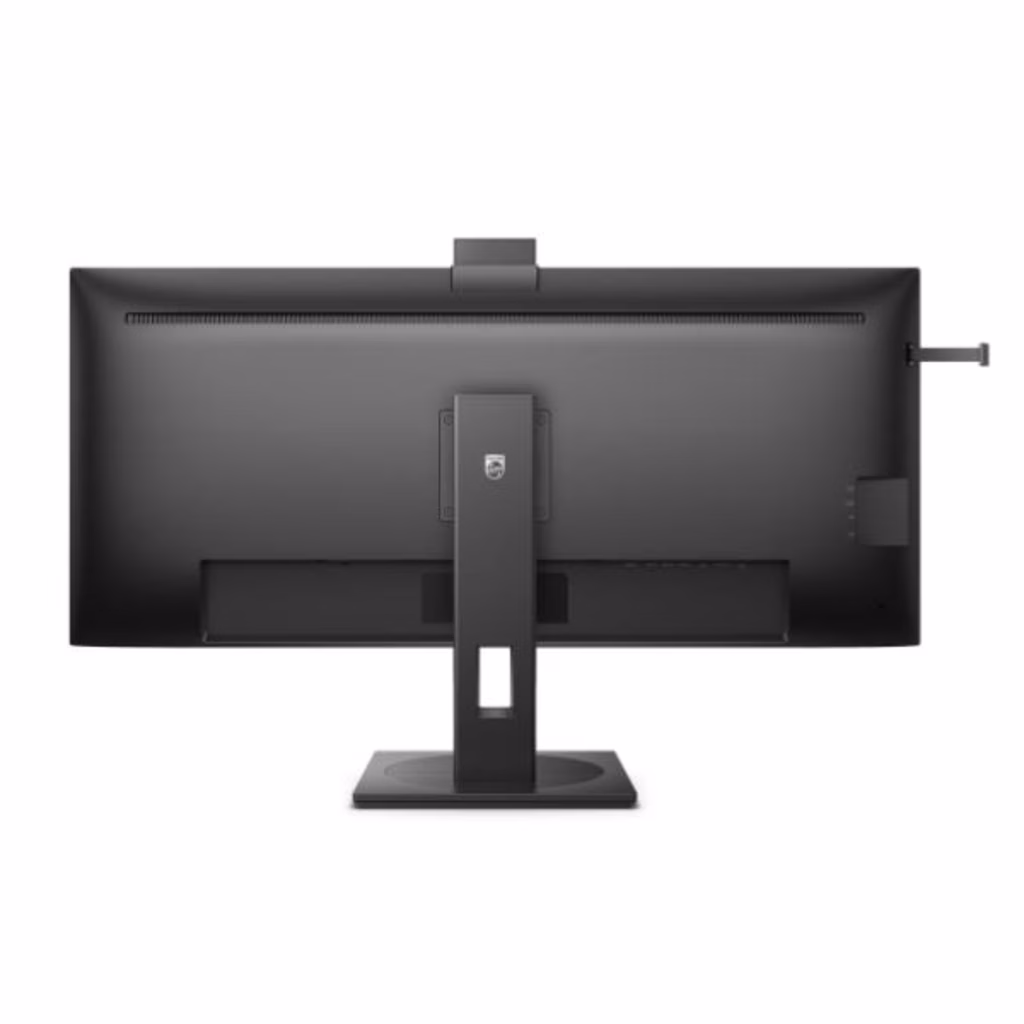 This USB-C monitor is for data transfer, power delivery and watching videos. The integrated 5 MP webcam delivers sharp images, and the noise cancelling mic lets people