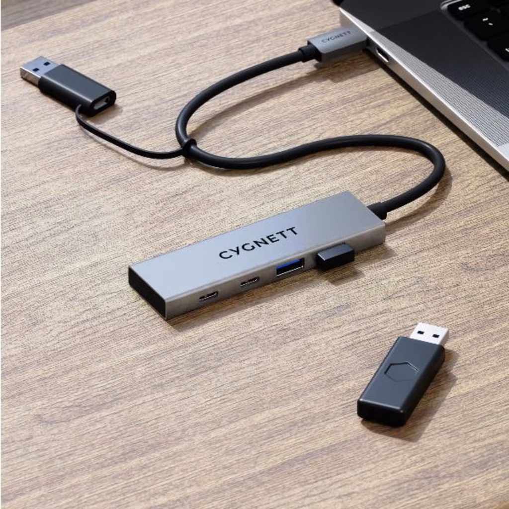 Unite 4in1 USB-C to USB-A HubCaratteristiche4 porte USB-A 3.2Trasferimento dati ad alta velocitàAdattatore integrato da USB-C a USB-AStruttura in alluminio resistenteGaranzia di 2 anniUn accessorio indispensabileAggiungi facilmente 4 porte USB-A al tuo dispositivo e collega senza problemi tastiere, hard disk, cavi di ricarica e molto altro.Compatto e leggeroL Hub USB-A 4-in-1 unisce praticità e design: leggero, poco ingombrante e ideale sia per l uso in viaggio che sulla scrivania.Connettività universaleGrazie all adattatore integrato, puoi passare rapidamente da USB-A a USB-C e connettere i tuoi dispositivi senza complicazioni.Plug & PlayNessuna installazione necessaria: collegalo e usalo subito, senza software aggiuntivi.
