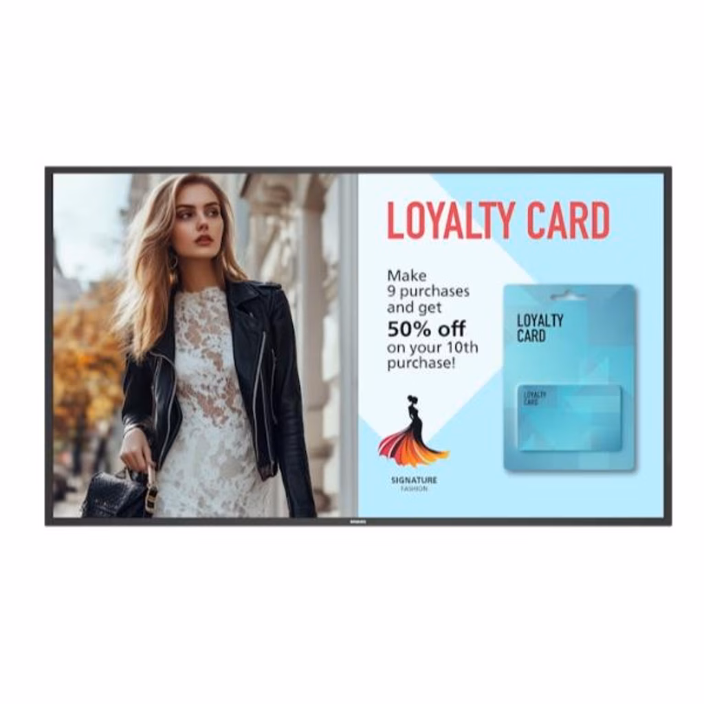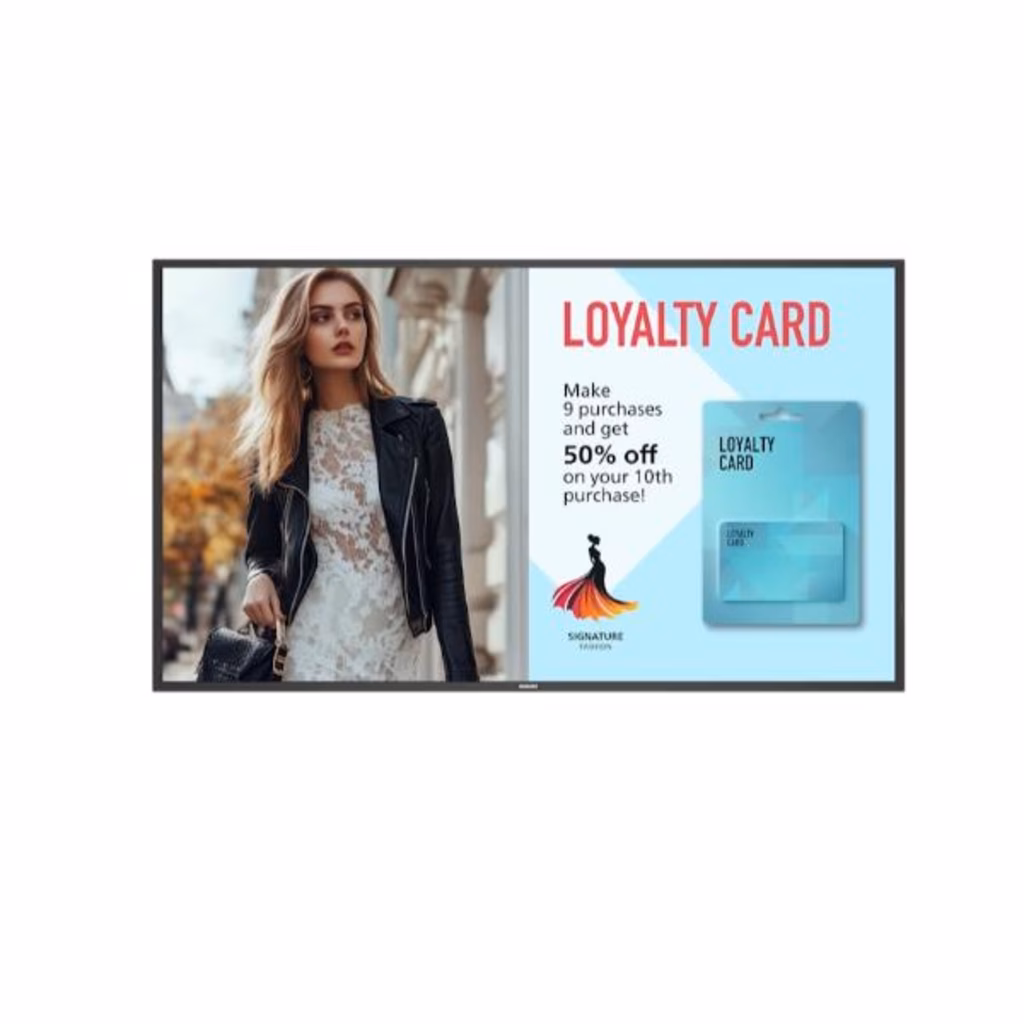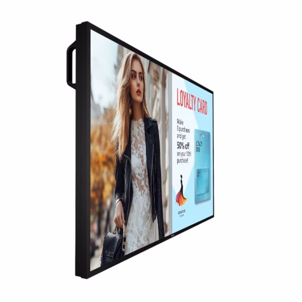 Montaggio secondo le esigenze Installabile in verticale o in orizzontale, con varianti di dimensioni che includono 43", 50", 55" e 65" per adattarsi a una vasta gamma di scopi di installazione. Robusto rivestimento protettivo e IP5X In grado di resistere anche negli ambienti più esigenti, questo display professionale è realizzato con rivestimento protettivo in metallo e dotato della classificazione IP5X per la protezione dalle infiltrazioni.