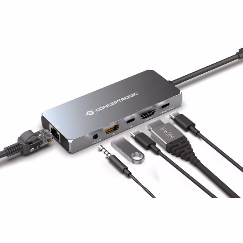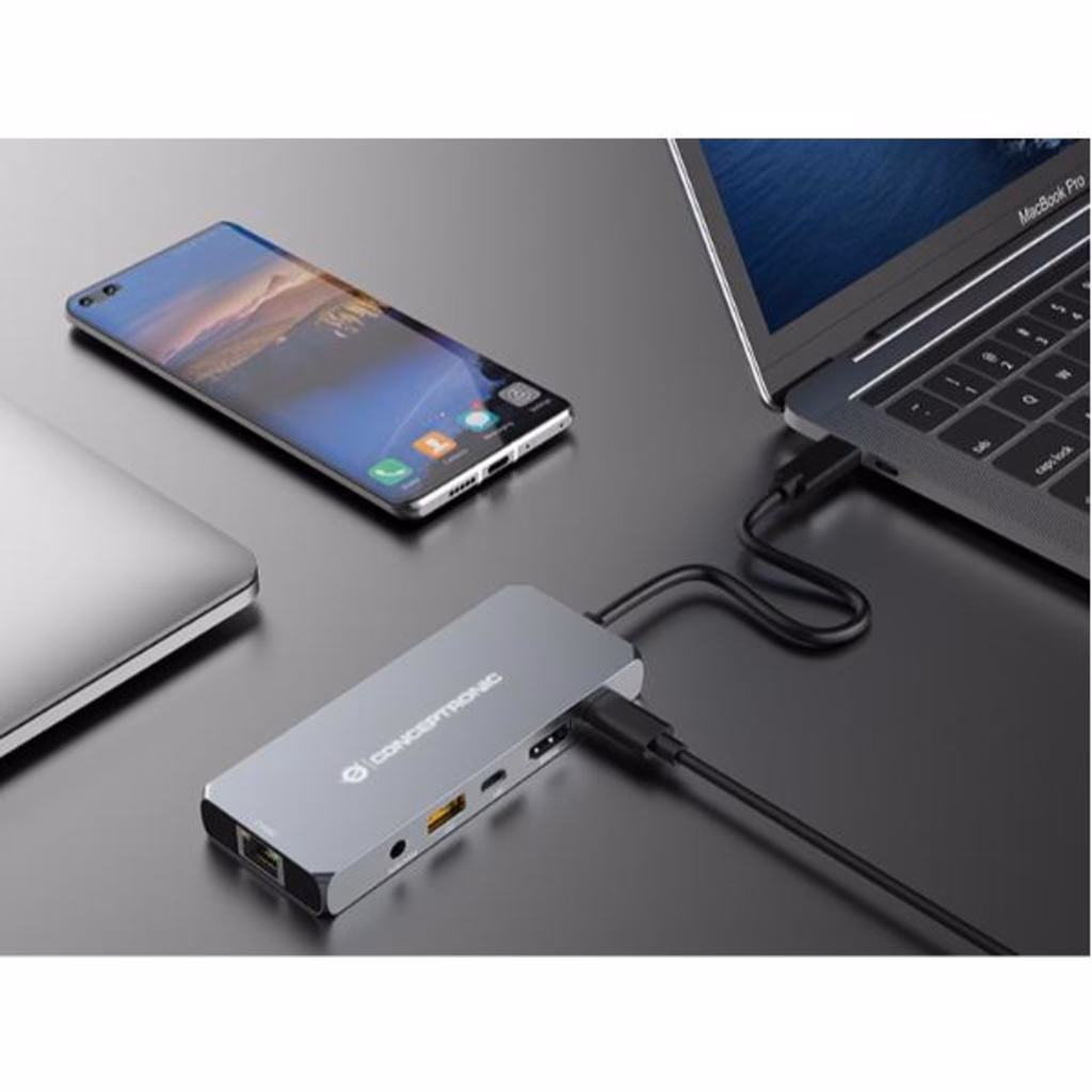 Collegate i vostri laptop, tablet o smartphone dotati di USB-C a un display HDMI utilizzando la docking station e godetevi la straordinaria risoluzione 8K Ultra HD con una frequenza di aggiornamento di 60 Hz. Inoltre, la docking station è dotata di un jack audio combo da 3,5 mm integrato, che consente di collegare facilmente cuffie o altoparlanti.