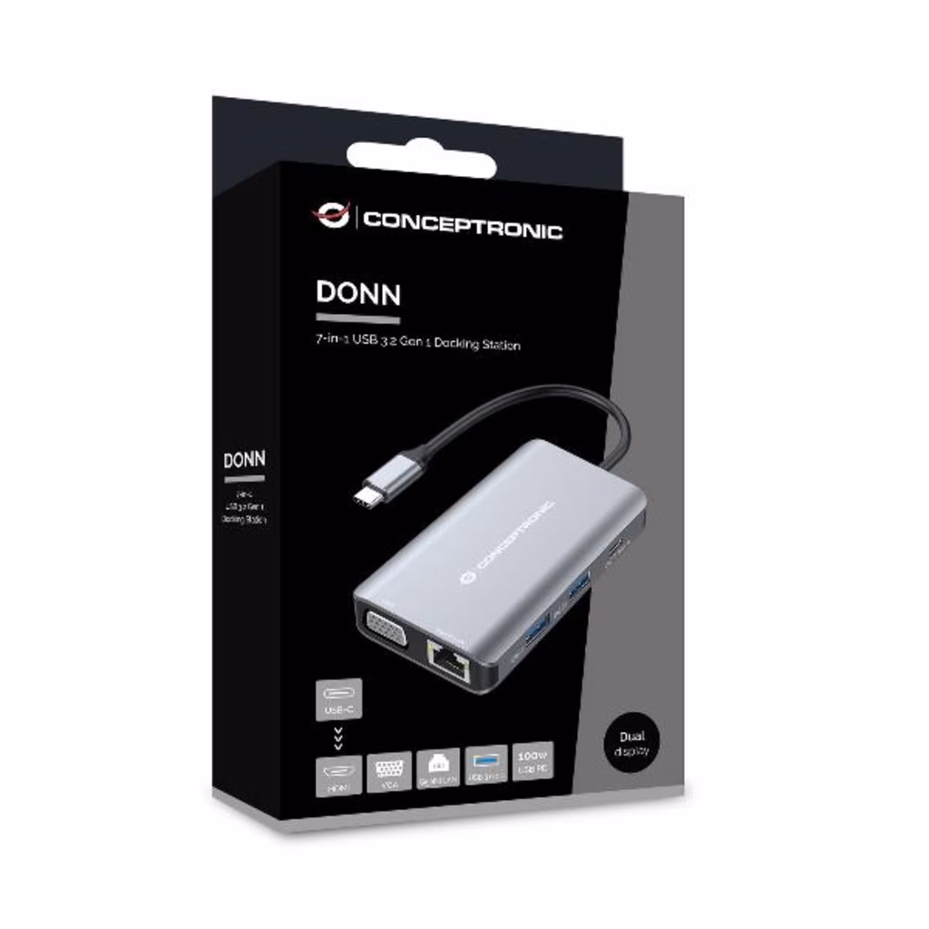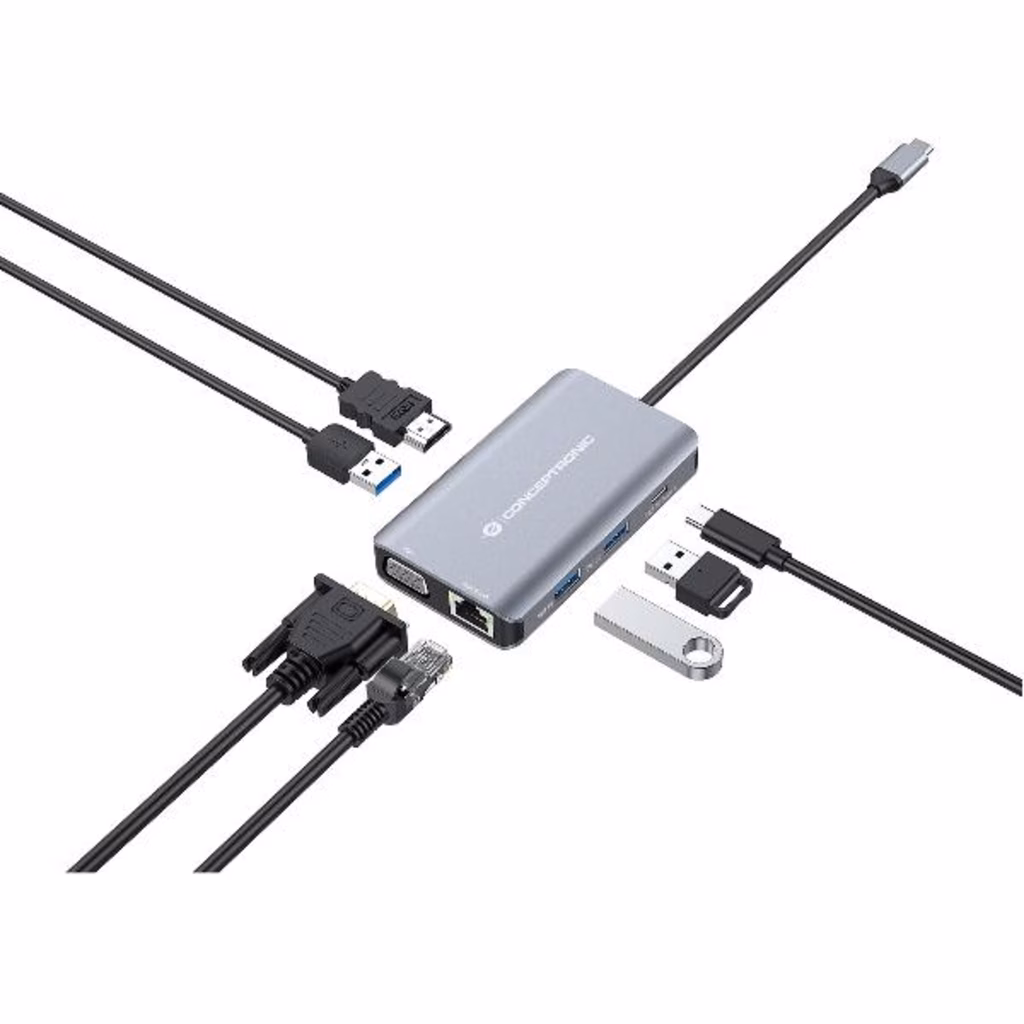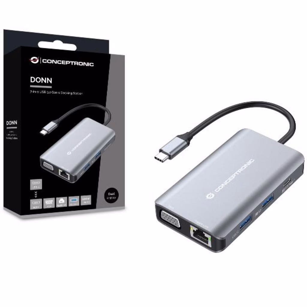 - Adattatore multiporta 7-in-1 da USB-C a HDMI/VGA/USB-C PD/USB 3.0/GbE