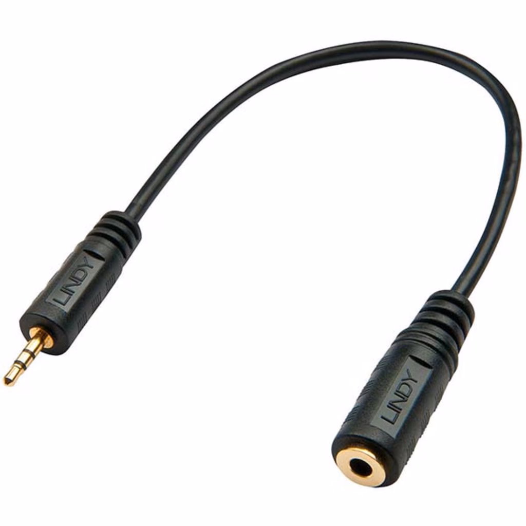 1x 2,5mm Maschio a 1x 3,5mm Femmina Cavo in PVC schermato con canale destro e sinistro Cavo 2x AWG28 / 2x 0,080mm² Colore: Nero Lunghezza: 20cm