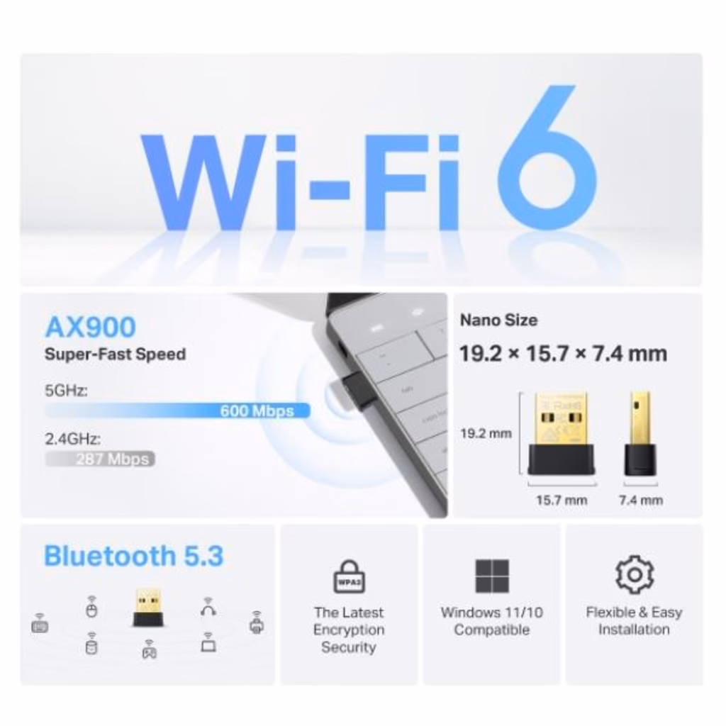 Adattatore USB AX900 Nano Wi-Fi 6 Bluetooth 5.3