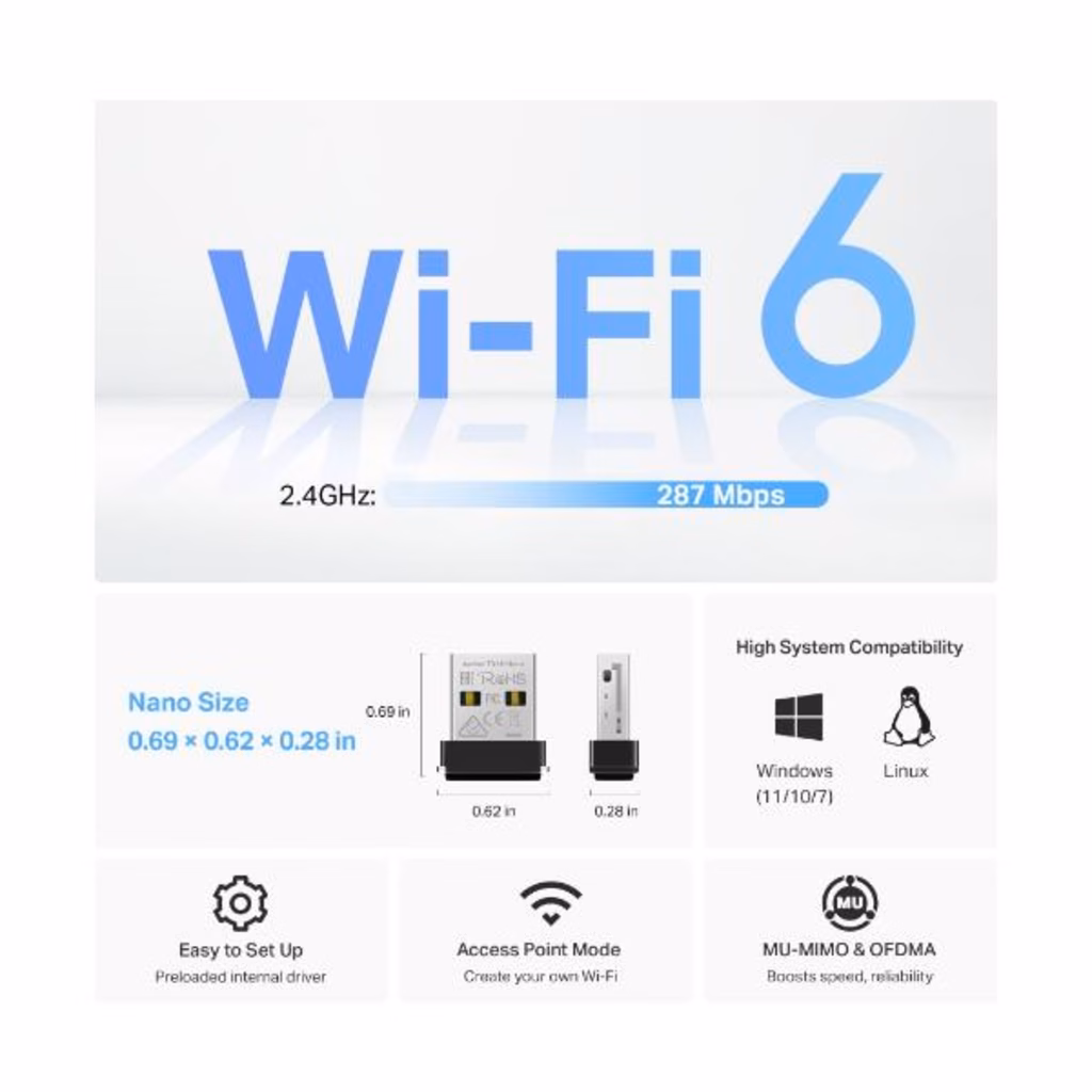 Compatto e portatile: dimensioni nanometriche (0,69×0,62×0,28 pollici) per un wireless velocissimo, perfetto per i viaggi e il lavoro remoto.