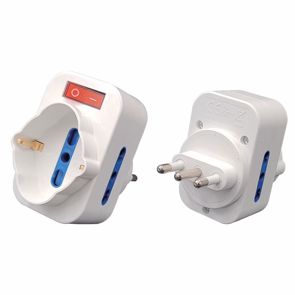 Adattatore multiplo rotante spina grande 16A > 2 prese bipasso + 1 universale