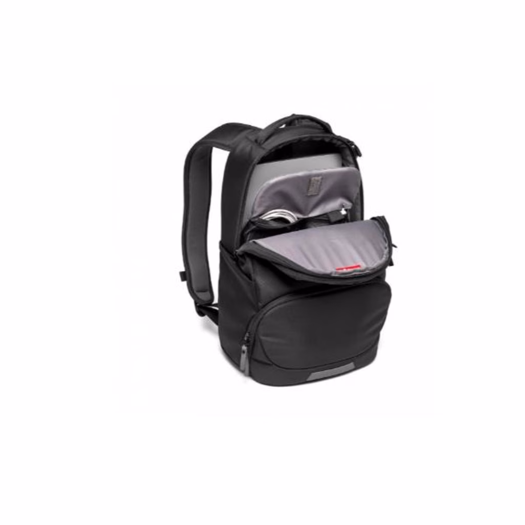 Il vano imbottito per fotocamera presenta il nuovo Sistema di Protezione M-Guard Manfrotto, realizzato in schiuma EVA ad alta densità, fornisce un eccezionale assorbimento degli urti con una sagoma sottile. La forma pieghevole personalizzabile consente massima versatilità per proteggere completamente l attrezzatura fotografica, massimizzando al tempo stesso l uso dello spazio. Il vano superiore presenta un ampio spazio per effetti personali, incluso un vano per laptop da 14 pollici.