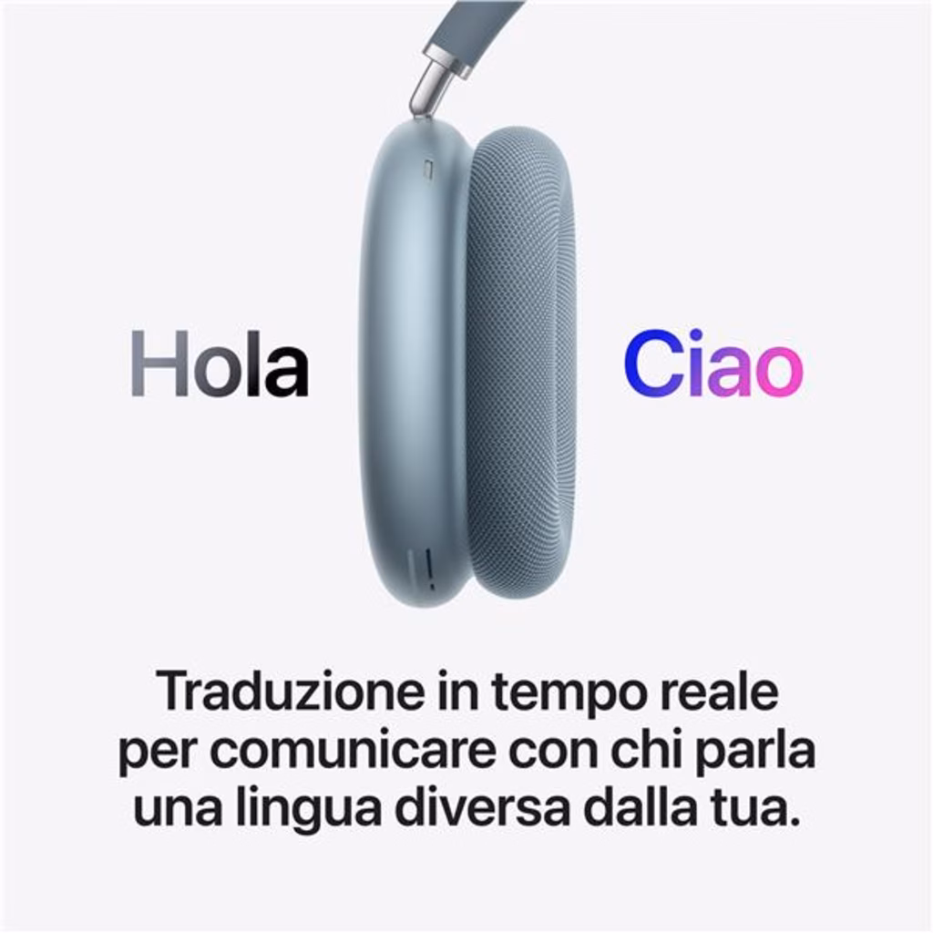 Apple AirPods Max 2 - BluL ascolto cambia musica. AirPods Max 2. Cancellazione attiva del rumore fino a 1,5 volte più efficace rispetto alla generazione precedente e suono ad alta fedeltà migliorato: le cuffie over ear per un ascolto sublime Caratteristiche principali - LA MIGLIORE ESPERIENZA D ASCOLTO OVER-EAR Con la potenza del chip H2, le AirPods Max 2 offrono un suono ad alta fedeltà migliorato, con bassi profondi, medi generosi e acuti cristallini, per un esperienza di ascolto impareggiabile. - ELIMINA IL RUMORE DI FONDO La cancellazione attiva del rumore è fino a 1,5 volte più efficace rispetto alla generazione precedente. Lasciati avvolgere dal suono. - SENTI QUELLO CHE TI SUCCEDE INTORNO L audio adattivo regola automaticamente i livelli di cancellazione del rumore in base all ambiente. La funzione Rilevamento conversazione abbassa il volume delle cuffie per rendere più facile parlare con le persone intorno a te. E con la modalità Trasparenza non perdi il contatto con i suoni dell ambiente esterno. - AUDIO SPAZIALE PERSONALIZZATO Le AirPods Max 2 riproducono il suono nel modo più adatto all unicità della forma del tuo orecchio e, grazie al rilevamento dinamico della posizione della testa, ti immergono in un ambiente sonoro da cinema. - COMUNICA CON CHI PARLA UNA LINGUA DIVERSA DALLA TUA Ti basta tenere premuto il tasto della modalità di ascolto per attivare la traduzione in tempo reale con Apple Intelligence,2 che traduce automaticamente nella tua lingua ciò che la persona con cui interagisci sta dicendo. - PROGETTATE PENSANDO ALL ACUSTICA Fascia traforata traspirante, cuscinetti in memory foam e tessuto speciale, e aste telescopiche per un comfort eccezionale. Disponibili in cinque bellissimi colori. - AUDIO LOSSLESS VIA USB-C Collega le tue AirPods Max 2 al tuo dispositivo con un cavo USB-C per goderti tutti i dettagli delle registrazioni originali. E puoi anche caricarle con lo stesso cavo che usi per gli altri dispositivi Apple. - UN GIORNO INTERO DI AUTONOMIA Fino a 20 ore di ascolto o di riproduzione di film con una sola carica, anche con cancellazione attiva del rumore e audio spaziale abilitati.Le AirPods Maxsono progettate per offrirti un comfort impareggiabile e un isolamento acustico ottimale. Lasciati avvolgere dal suono.Premi la Digital Crownper far partire la musica o metterla in pausa, per scattare una foto o registrare un video, o per disattivare e riattivare il microfono durante le chiamate. Premila due volte per passare da un brano all altro o per terminare una chiamata. Ruotala per regolare il volume con precisioneRealizzata con un tessuto a rete traspirante, la fascia traforatadell archetto distribuisce il peso in modo uniforme per ridurre la pressione sulla testa.I cuscinetti in memory foam,progettati per una resa acustica perfetta e ricoperti da uno speciale tessuto a rete, garantiscono quella vestibilità che sta alla base di un suono incredibile.Un meccanismo permette agli splendidi padiglioniin alluminio anodizzato di ruotare in modo indipendente l uno dall altro e bilanciare la pressione.Le aste telescopichesi estendono facilmente dalla struttura in acciaio inossidabile e poi restano in posizione per assicurare comodità e isolamento costanti.La formula esatta di un suono straordinario.Il rivoluzionario chip H2 consente alle AirPods Max 2 di offrire un suono ad alta fedeltà ancora più ricco di dettagli incredibili. Un nuovo amplificatore ad alta gamma dinamica mette a disposizione del driver creato su misura ancora più headroom, per regalarti bassi più profondi, voci più naturali e una definizione precisa degli strumenti in uno spazio acustico più ampio.Cancellazione attiva del rumore migliorataGrazie alla potenza del chip H2, le AirPods Max 2 ti regalano un esperienza più coinvolgente riducendo ancora di più i suoni indesiderati: la cancellazione attiva del rumore è fino a 1,5 volte più efficace rispetto alla generazione precedente. I nuovi algoritmi audio computazionali contrastano in modo più efficace il disturbo proveniente dall esterno tramite un segnale opposto di pari ampiezza, senza compromettere la qualità del suono.L audio adattivoregola automaticamente i livelli di cancellazione del rumore in base all ambiente in cui ti trovi: in ufficio o al bar, ti garantisce sempre un esperienza di ascolto ottimale. E se vuoi interagire in modo naturale con il mondo intorno a te, ti basta premere il tasto per scegliere la modalità di ascolto: passa a Trasparenza e sentirai anche i suoni dell ambiente esterno.BatteriaFino a 20 ore di musica o film con la cancellazione attiva del rumore e l audio spaziale abilitatiSiri, sempre al tuo servizioFai partire una canzone o una chiamata, chiedi indicazioni stradali o controlla i tuoi impegni: ti basta dire Ehi Siri . E quando Siri ti chiede se vuoi ascoltare un messaggio, rispondere a una chiamata o gestire una notifica, puoi semplicemente annuire oppure scuotere la testa per confermare o rifiutare.Lo switch è automatico e capiscono quando le indossiSe rispondi a una chiamata sull iPhone mentre ascolti della musica sul Mac, le AirPods Max ti seguono in automatico. E capiscono anche quando le togli: vanno in pausa finché non le indossi di nuovo.Condivisione audioTi basta un tap per condividere fra due paia di AirPods l audio del tuo iPhone, iPad, Mac o dell Apple TV.Ricarica USB-CIl connettore USB-C ti permette di caricare le AirPods Max 2 con lo stesso cavo che usi per il tuo iPhone, iPad, Mac o altri dispositivi Apple.Smart CaseQuando le riponi nella loro morbida ed elegante Smart Case, le AirPods Max entrano in modalità a bassissimo consumo.