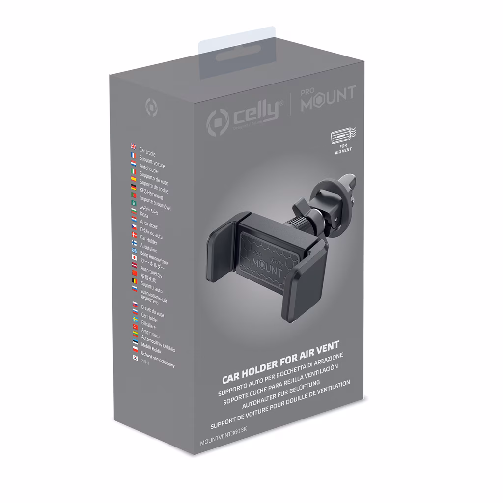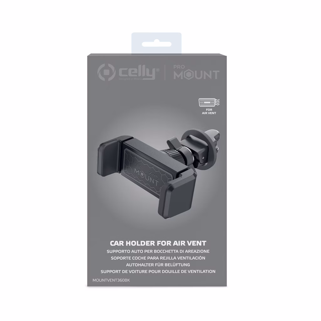 MOUNTVENT360 è il supporto auto universale per il tuo smartphone dotato di clip per bocchetta di areazione.