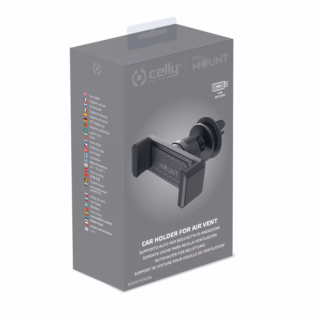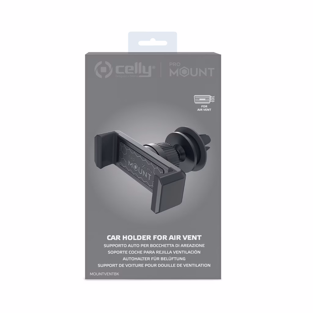 MOUNTVENT è il supporto auto universale per il tuo smartphone dotato di clip per bocchetta di areazione.