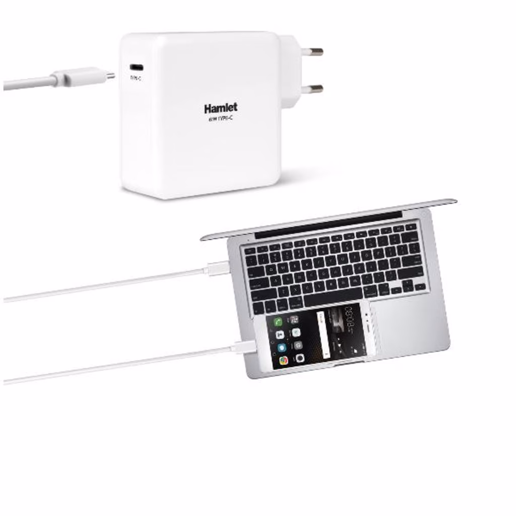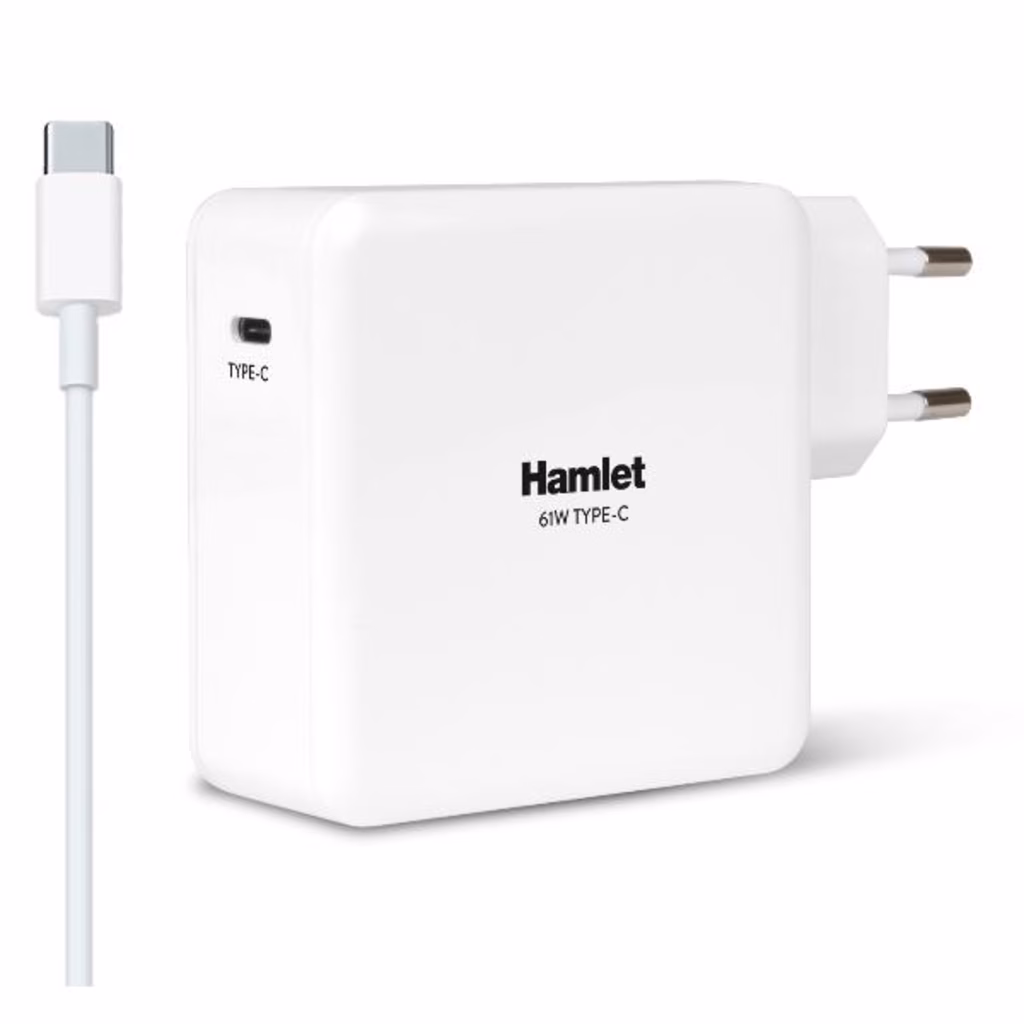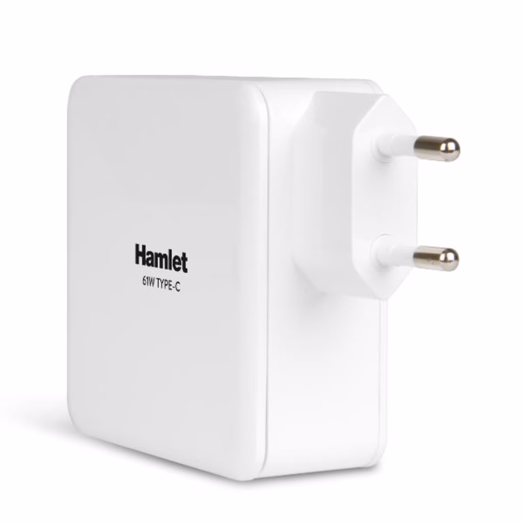 Hamlet 61W Type-C Charger è un alimentatore universale che permette di ricaricare velocemente Notebook e dispositivi mobili come Smartphone e Tablet PC dotati di porta USB-C. La tecnologia USB Power Delivery rileva automaticamente il dispositivo collegato e fornisce la potenza corretta per la ricarica più veloce possibile. Il cavo di ricarica USB Type-C da 1,8 metri è incluso nella confezione.caratteristiche