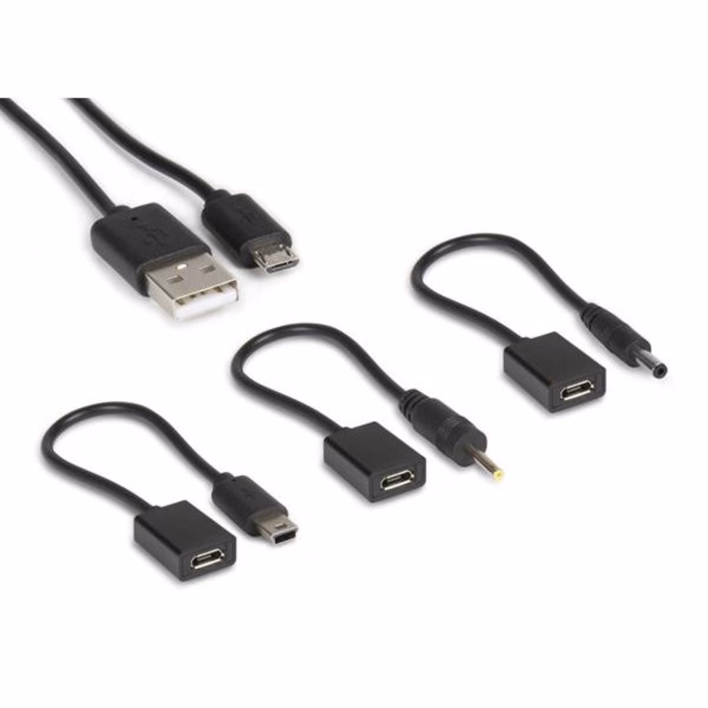 Universal Kit è la soluzione 4 in 1 per ricaricare i propri dispositivi mobili sia a casa che in viaggio. La pratica porta USB insieme ai 4 diversi connettori di alimentazione intercambiabili in dotazione consentono di alimentare la maggior parte dei dispositivi mobili ricaricabili tramite USB quali Smartphone, Tablet e lettori MP3.
