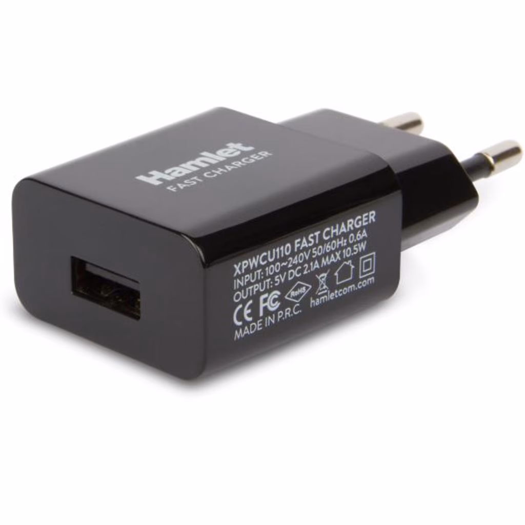 Hamlet Fast Charger è un alimentatore USB da parete con 10,5W (2,1A) di potenza che si collega a una normale presa elettrica da 220V e consente di ricaricare smartphone, tablet e altri dispositivi alimentati tramite USB. Il design compatto e portatile permette di infilarlo in una borsa o nello zaino per averlo sempre con se quando si è in viaggio.caratteristiche