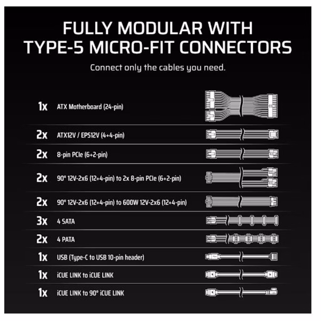 Immagine di Alimentatore per PC 1.000 w CORSAIR ICUE LINK HX1000I SHIFT CP-9020265-EU