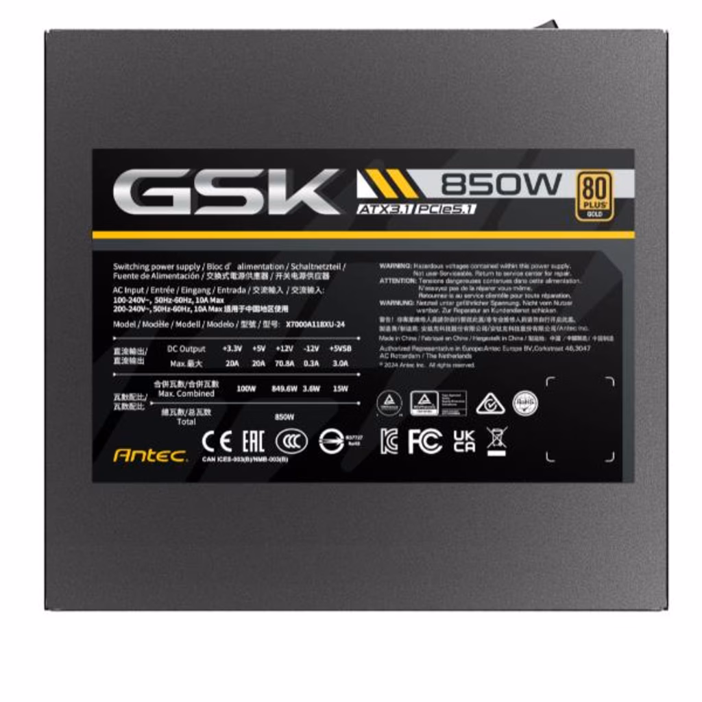 Vi presentiamo il nostro alimentatore GSK ATX3.1, progettato con le massime prestazioni e stabilità per il mercato dei videogiochi e degli appassionati. Grazie a caratteristiche avanzate come ATX 3.1, PCIe 5.1, condensatori JP di alta qualità, stabilità senza pari ed efficienza certificata 80 PLUS® Gold, potete aspettarvi prestazioni brillanti dal vostro sistema.