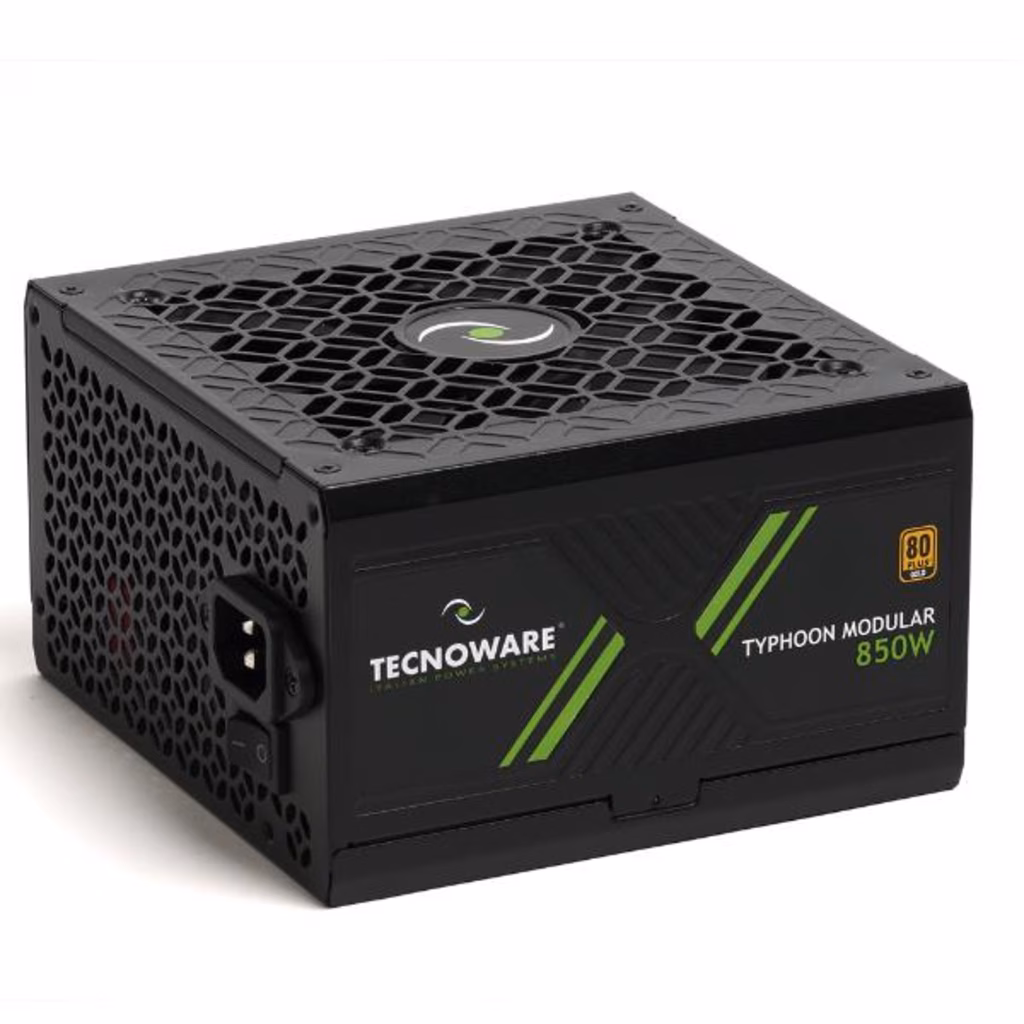 PSU TYPHOON 850W MODULARAlimentatore per PC Game, TYPHOON 850 W MODULAR 80+ GOLD, PFC Attivo, Ventola super silent 12 cm, 6 x SATA, 4 x PCI-E 6+2, 1 x 24 Poli, 2 x 12 V 4+4 Poli, 3 x Molex
