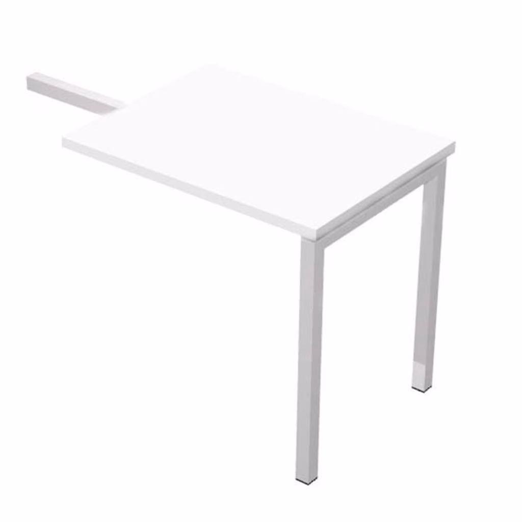 Allungo per scrivania EasySpace 4040 spessore 2,2 cm in melaminico antigraffio e antiriflesso. Bordi dei piani scrivania e ritorno in abs in spessore. Struttura in metallo a sezione quadra 40x40 mm, finitura grigio alluminio. Piedini regolabili.