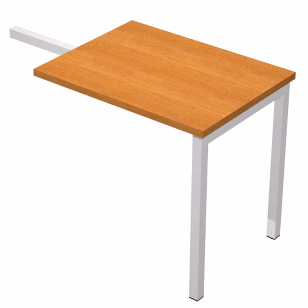 Allungo per scrivania EasySpace 4040 spessore 2,2 cm in melaminico antigraffio e antiriflesso. Bordi dei piani scrivania e ritorno in abs in spessore. Struttura in metallo a sezione quadra 40x40 mm, finitura grigio alluminio. Piedini regolabili.