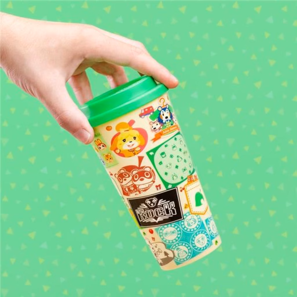 Porta  con te una bevanda in viaggio  con la tazza da viaggio di Animal Crossing, un'adorabile tazza di plastica con le icone e i personaggi preferiti come Isabelle e Tom Nook.