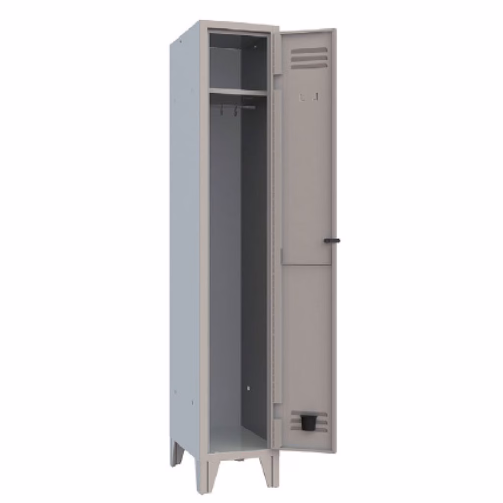 Armadio spogliatoio metallico su piede stilizzato con puntale in materiale plastico predisposto per piedino regolabile e zoccolo frontale/laterale - con ripiano superiore dotato di asta porta grucce zincata e ganci zincati - ante con apertura a 180°con feritoie superiori e inferiori per lareazione - predisposizione per cartellino porta nome - bicchiere raccogli goccia - con serratura a cilindro - doppia chiave - realizzati in lamiera 6/10 - verniciati a polveri termoindurenti di colore grigio RAL 7035 - richiedibile con ante nei colori* blu (BL), giallo (GI) e rosso (RO) tramite supplemento da considerare per singola anta - dimensione interna vano LxPxH cm 32x48x161 - forniti montati - LxPxH cm: 32,2x50x180 - Posti: 1 - tetto inclinato: si - Consegna: . FORNITO AL PIANO STRADALE SU PEDANA