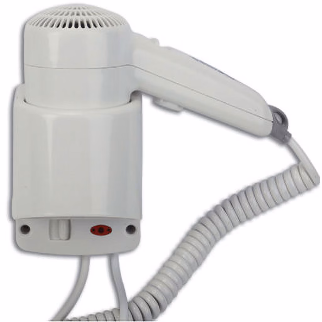 Asciugacapelli uso alberghiero a pistola con supporto murale laterale MEDIAL YUL BASIC bianco