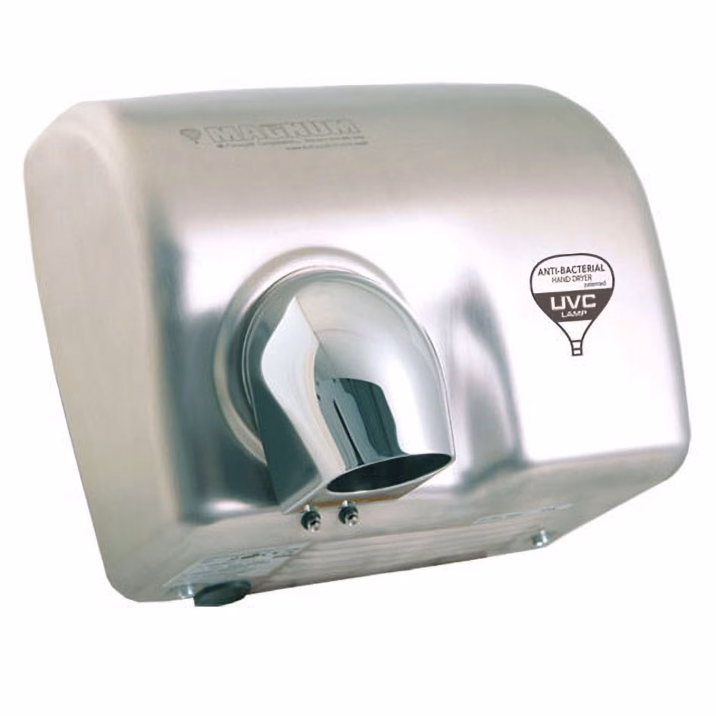 Asciugamani elettrico professionale ad aria calda dotato di speciale lampada UVC per l'abbattimento della carica batterica. Disponibile in versione automatica, con azionamento a fotocellula, munito di bocchetta erogazione aria orientabile (versione opzionale con bocchetta fissa). Corpo antifurto e antivandalo in alluminio con aste di chiusura in acciaio inox AISI 304. Coperchio in acciaio al carbonio con trattamento anti-writer per la versione bianco porcellanato, o in acciaio inox AISI 304 in finitura lucida o satinata . Tempo di asciugatura medio 21 secondi. Sistema di chiusura antifurto e di sicurezza con viti e boccole speciali. Sistema di sicurezza con protezione salvamotore con funzione di blocco. Classe di isolamento = Classe I