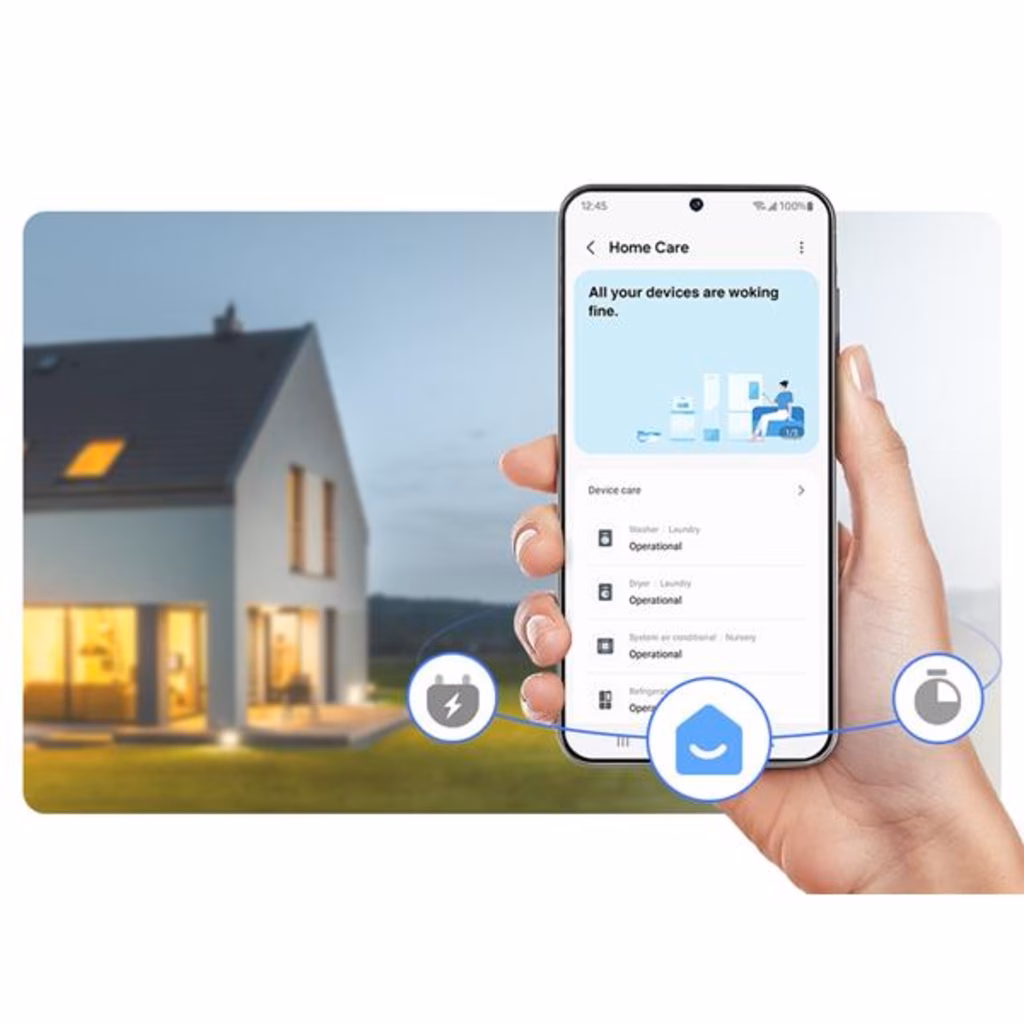 Tieni sotto controllo i tuoi consumi energetici con SmartThings Energy[9]. Ti consiglia come migliorare l'efficienza energetica dei tuoi elettrodomestici fornendoti in tempo reale le informazioni sui loro consumi[10] e confrontando questi dati con quelli del mese precedente. e se stai per superare la soglia di consumo mensile che hai impostato, il sistema ti invia una notifica.SmartThings Home CareManutenzione semplice e intelligente