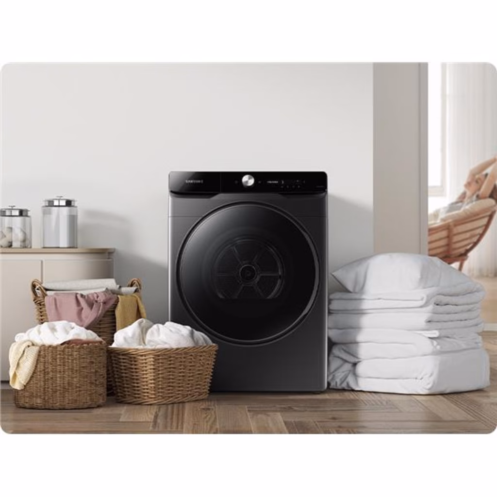 Samsung DV16DG8600BVU3 asciugatrice Libera installazione Caricamento frontale 16 kg A+++ NeroAsciutto perfetto in tempi record Hybrid Heat pump Asciuga il bucato in meno tempo indipendentemente dalla temperatura esterna e risparmiando energia[1]. Il sistema Hybrid Heatpump è provvisto di un'apposita resistenza che pre-riscalda laria alla temperatura di asciugatura ottimale. Per mantenere costante questa temperatura, la pompa di calore integrata scalda laria attraverso un refrigerante e la ricicla, garantendo la massima efficienza. Risparmio energetico intelligente Modalità AI Energy Monitora e riduci il consumo di energia della tua asciugatrice[2]. Grazie alla modalità AI Energy[3] , potrai monitorare i consumi energetici e prevedere limporto in bolletta. Per i programmi utilizzati in modalità AI Energy, riduce il consumo di energia fino al 20%[3] abbassando la temperatura e aumentando la durata del programma per asciugare a fondo. Sempre connessi grazie a SmartThings Wi-Fi integrato Il modo più semplice ed efficace per usare la tua asciugatrice. L'app SmartThings[4] utilizza i dati acquisiti durante le interazioni con gli utenti per migliorare le prestazioni di asciugatura. E con la funzione Delay End potrai ottimizzare la tua programmazione giornaliera. Inoltre, se la lavatrice e l'asciugatrice sono connesse, la funzione Auto Cycle Link[5] seleziona il programma di asciugatura ideale in base al lavaggio. SmartThings Clothing Care Lavaggio su misura. Il modo più semplice per fare il bucato. Un bucato perfetto, proprio come lo vuoi tu. La funzione Clothing Care, offerta dallapp SmartThings[6] , analizza l'utilizzo[7] e vari fattori esterni, ad esempio il clima e la stagione, per dare consigli e creare cicli di asciugatura personalizzati in base al proprio stile di vita[8]. SmartThings Energy Risparmia energia in modo smart! Tieni sotto controllo i tuoi consumi energetici con SmartThings Energy[9]. Ti consiglia come migliorare l'efficienza energetica dei tuoi elettrodomestici fornendoti in tempo reale le informazioni sui loro consumi[10] e confrontando questi dati con quelli del mese precedente. e se stai per superare la soglia di consumo mensile che hai impostato, il sistema ti invia una notifica. SmartThings Home Care Manutenzione semplice e intelligente Prendersi cura dell'asciugatrice non è mai stato così semplice. SmartThings Home Care[11] ti avvisa automaticamente quando è necessario sostituire un componente e ti aiuta a risolvere eventuali problemi. Oltre a un manuale utente, questa pratica funzione offre anche consigli utili per utilizzare al meglio il tuo elettrodomestico. Asciuga tanti capi in più Versione extralarge Asciuga tanti capi in una sola volta, risparmiando tempo e fatica. Grazie alla sua incredibile capienza, questa asciugatrice è in grado di contenere in un unico carico tanti capi anche molto grandi, ad esempio un piumone invernale. In questo modo, dovrai asciugare meno carichi[12] e avrai più tempo da dedicare al tuo benessere. Asciuga i vestiti in modo uniforme 360 fori per laria Ogni capo sarà sempre perfettamente asciutto, in ogni punto del cestello. Il sistema di ventilazione è dotato di 360 fori disposti circolarmente che migliorano la circolazione dell'aria e distribuiscono un grande volume d'aria in modo uniforme e in ogni direzione. In questo modo, il bucato verrà asciugato con la massima efficacia su tutta la superficie del cestello. Fino al 99,9% di sanificazione[13] Hygiene Care + Niente più batteri, acari e allergeni sul tuo bucato. Hygiene Care+ igienizza i capi asciutti e bagnati[13] grazie a getti di calore ad alta temperatura. Elimina fino al 95% dei pollini, il 100% degli acari della polvere e il 99,9% dei batteri[14] , oltre al 99% degli allergeni[15] rilasciati dalla polvere e dai peli degli animali. Meno pelucchi Sistema filtrante a tre strati Grazie a questo sistema filtrante a tre strati, avrai meno residui di polvere sui vestiti e la tua asciugatrice sarà sempre in perfette condizioni. Durante l'asciugatura, questo sistema cattura la polvere e le fibre che si staccano dai capi in modo molto efficace, agendo per due volte con un filtro 2 in 1 sotto il cestello e una terza volta con un filtro ultrasottile[16] davanti allo scambiatore di calore. Pulizia perfetta anche con gli amici a quattro zampe Pet Care Un profumo di pulito irresistibile anche con gli amici a quattro zampe. Il programma Pet Care elimina fino al 96,3% dei peli più sottili[17] che si attaccano ai vestiti e ad altri capi, come la biancheria da letto, e che spesso non si notano nemmeno. Inoltre, è in grado di rimuovere fino al 99% dei cinque odori sgradevoli[18] sprigionati dal cibo e dalle feci degli animali domestici.Asciutto perfetto in tempi recordHybrid Heat pump