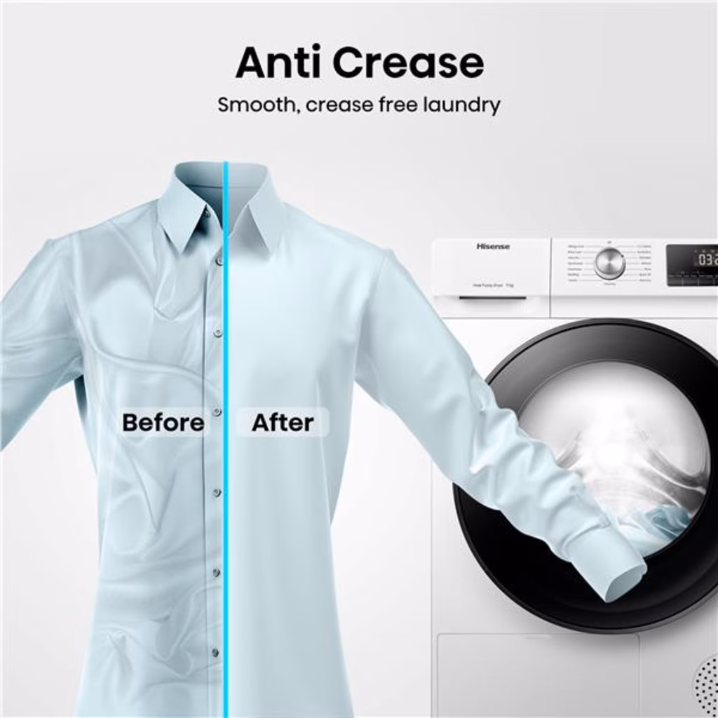 Un'asciugatura più delicata che si prende cura dei tuoi capiHeat PumpLa tecnologia a pompa di calore di Hisense garantisce temperature di asciugatura più basse e protegge i vestiti dai danni fornendo al contempo un asciugatura di alta qualità. Inoltre massimizza l'uso dell'energia e consente di risparmiare efficacemente sul consumo di energia.