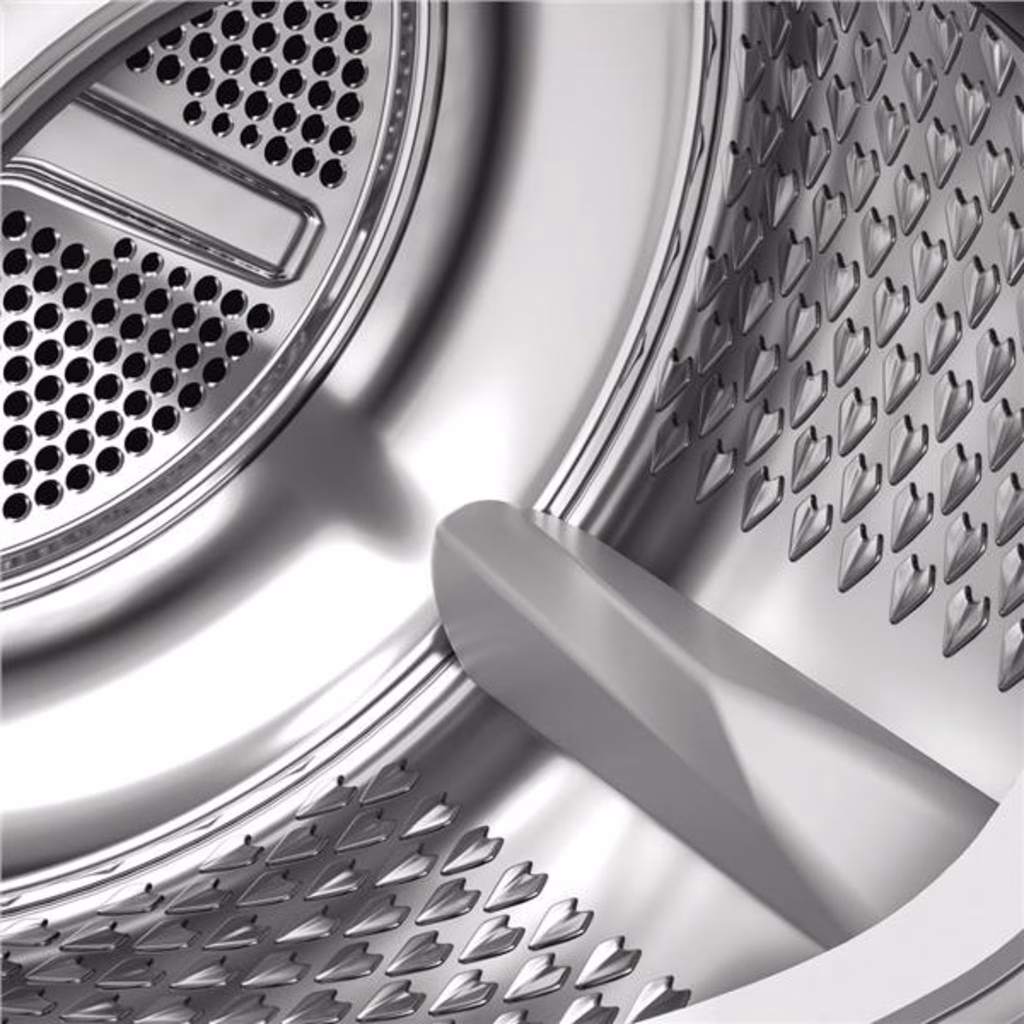 Questa asciugatrice ti assicura un'asciugatura perfetta in solo 1 ora. Progettata per farti risparmiare tempo da dedicare alle ciò che ami.AntipiegaL'opzione antipiega aggiunge un trattamento piega dopo la fine del programma, mantenendo il bucato in movimento, così da riducerre la formazione delle pieghe.Programma grandi capiSpazio extra.