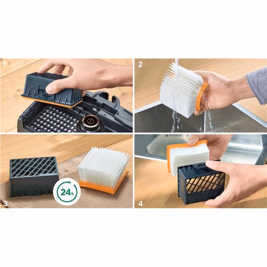 Bosch BGB41PET1 aspirapolvere a traino 4 L A cilindro Secco 700 W Sacchetto per la polvereBosch Motor Technology Pura potenza made in Germany. Goditi le potenti prestazioni dei nostri aspirapolvere Bosch: da oltre 65 anni, sviluppiamo e produciamo i motori ad alte prestazioni dei nostri aspirapolvere. Per noi di Bosch, un aspirapolvere non deve soltanto garantire risultati ottimali, ma anche durare nel tempo. Ed è per questo motivo che offriamo una garanzia supplementare di 10 anni sul motore Bosch. Goditi l'aria pulita durante le pulizie di casa. Il sacchetto AirFresh previene efficacemente la formazione di odori sgradevoli grazie alla tecnologia a carboni attivi. Filtra il 99,9% delle micro particelle di polvere e le trattiene al suo interno grazie al sistema di sigillatura di cui è dotato. Particolarmente indicato per i proprietari di animali domestici. Filtro HEPA per una migliore qualità dell'aria Una buona qualità dell'aria è importante, per questo utilizziamo il filtro igienico HEPA, prodotto in Germania. Produce un'aria in uscita più pulita dell'aria ambiente, filtrando il 99,95% delle particelle di polvere, dei batteri e degli agenti inquinanti, ideale per chi soffre di allergie.