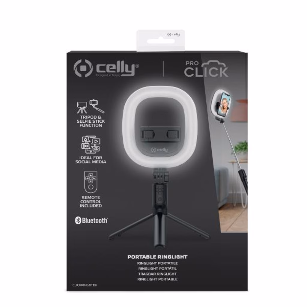Asta selfie nero CELLY CLICKRINGBT - Portable Tripod With Ring Light CLICKRINGBTBK
