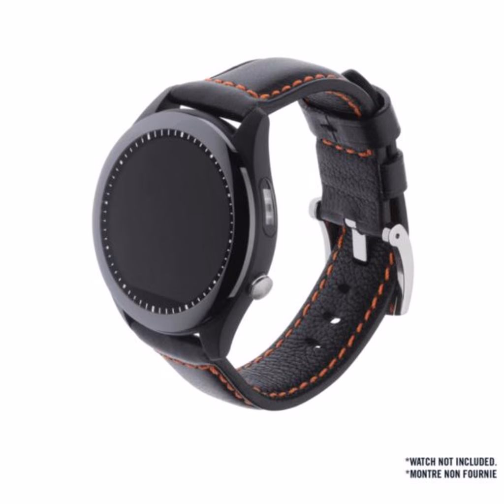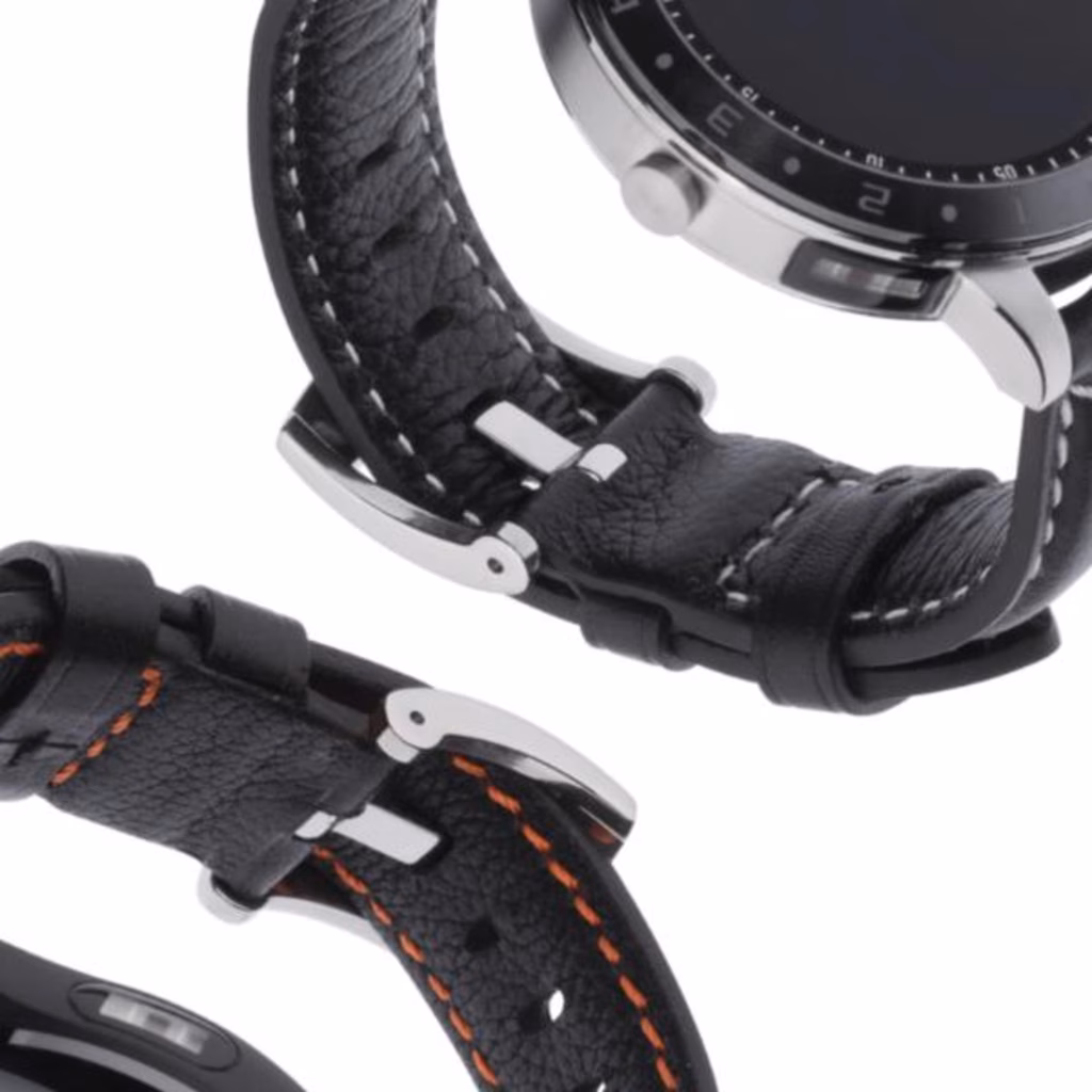 Cinturino Smartwatch Asus Vivowatch 5  è totalmente in pelle, di colore nero con rifinitura di colore arancione.
