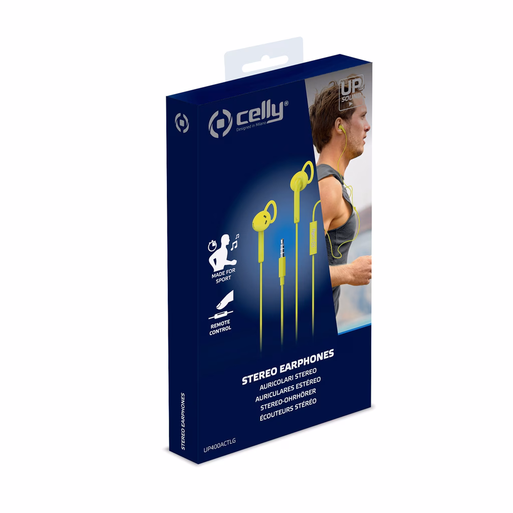 Auricolari con filo sì 1 x jack 3,5mm Giallo CELLY UP400ACT - Jack 3.5mm Stereo Sport Wired Earphone