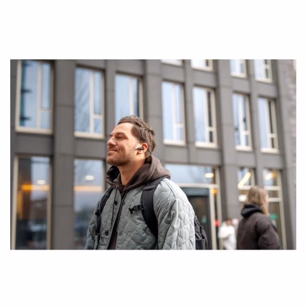 Se non ti piace la sensazione degli auricolari, questa soluzione wireless fa al caso tuo! Ciascun cuscinetto si posiziona nell'orecchio esterno e i sottili steli li mantengono fermi. Gli auricolari non entrano nel condotto uditivo e non si avverte alcuna sensazione di pressione anche durante sessioni di ascolto prolungate.