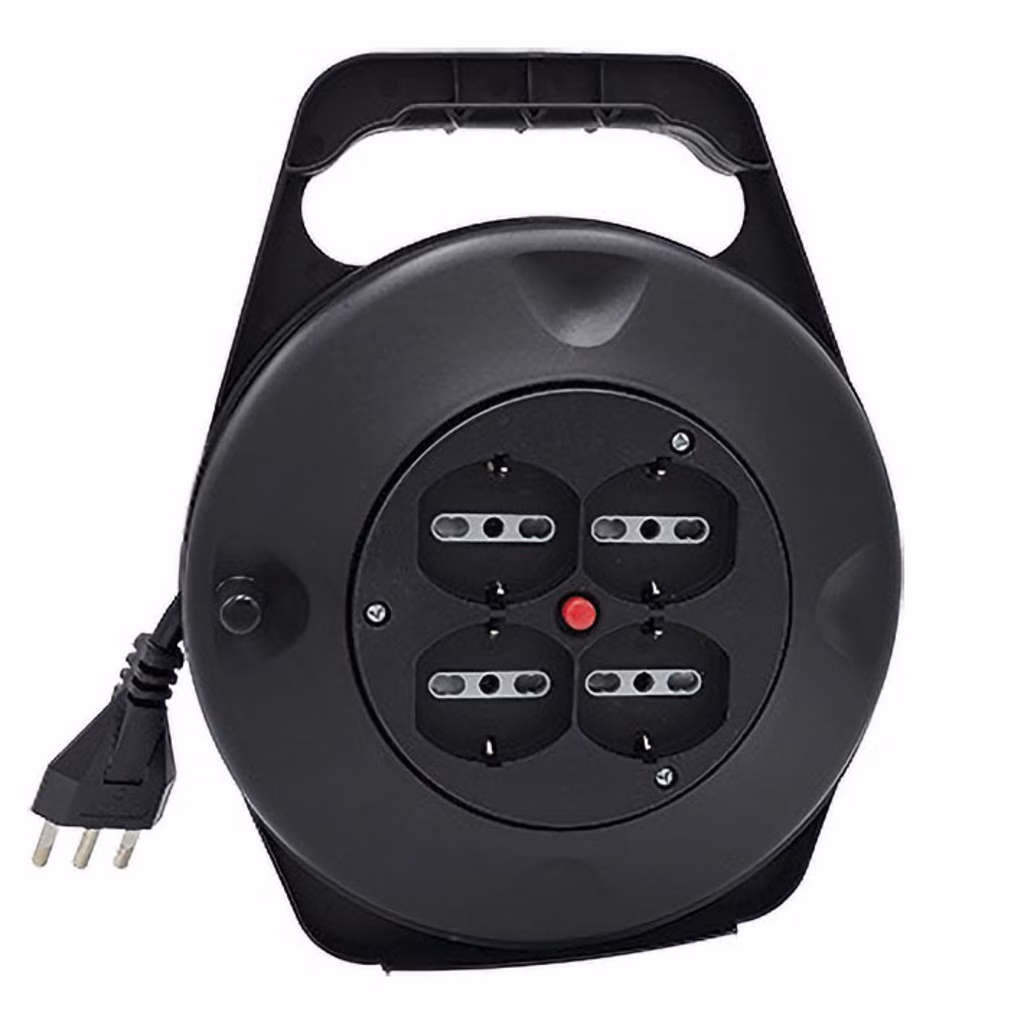 Avvolgicavo elettrico spina grande 16A > prese bipasso/Schuko - colore nero
