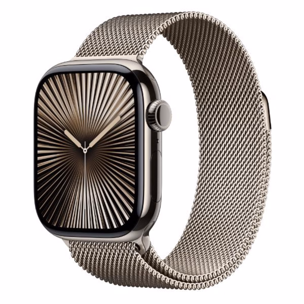 Apple Watch Series 10 GPS + Cellular, Cassa 46 mm in titanio naturale con Loop in maglia milanese naturale - M/L
