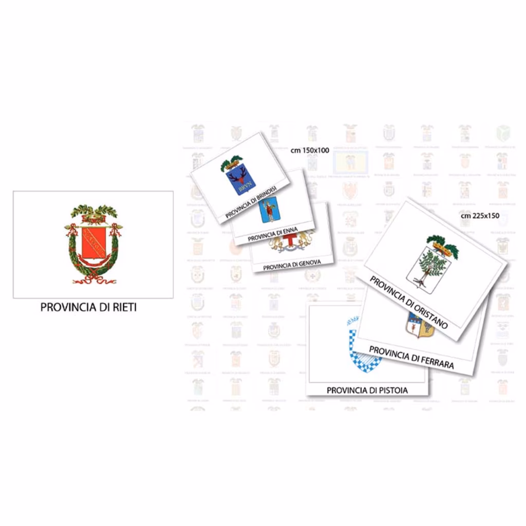 Bandiera da pennone in tessuto poliestere nautico da g/m² 115. Confezionata con doppia cucitura perimetrale, tela di rinforzo e corda di fissaggio sul lato sinistro. Provincia italiana da specificare nell'ordine