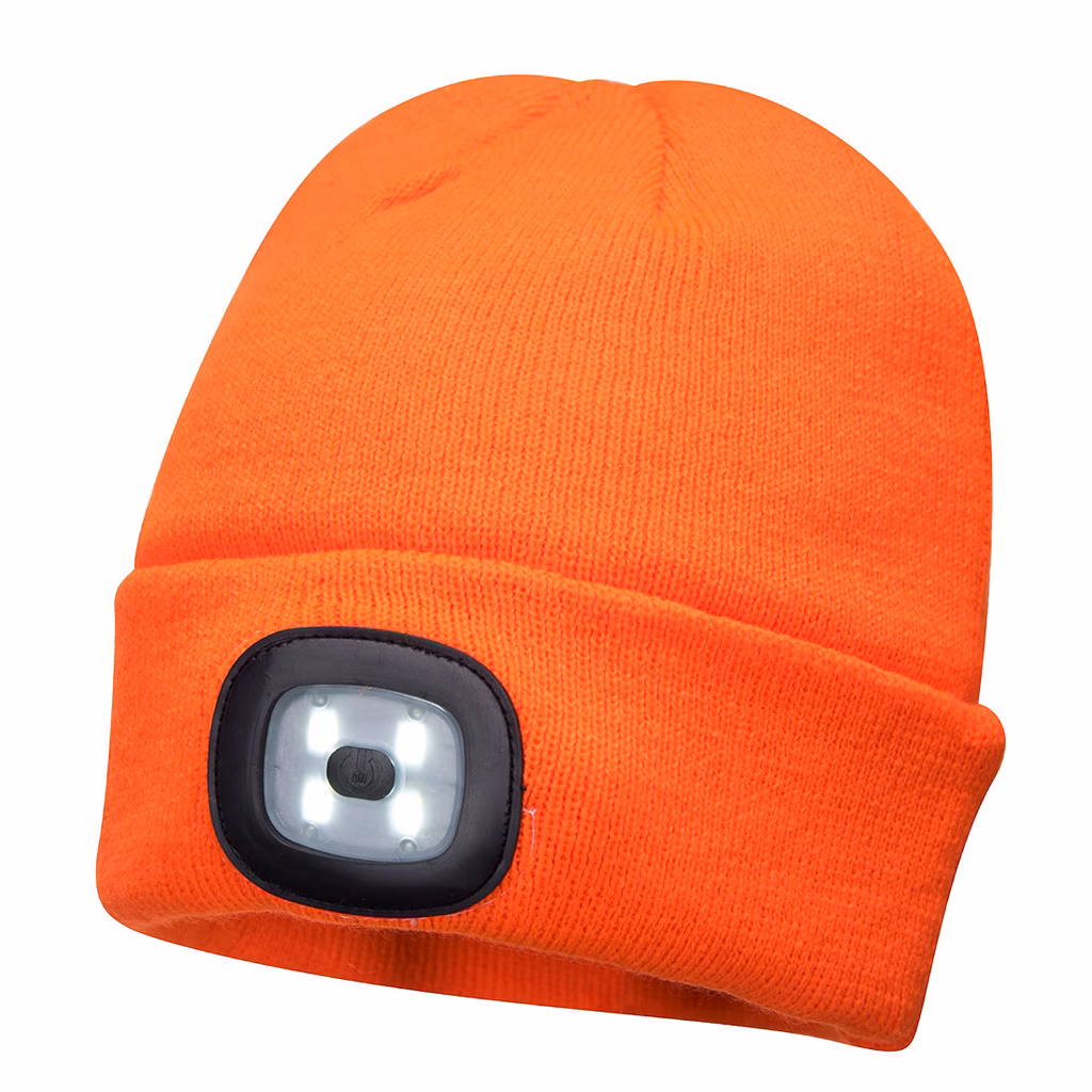 Berretto luce LED ricabicabile USB PORTWEST B029 colore arancione