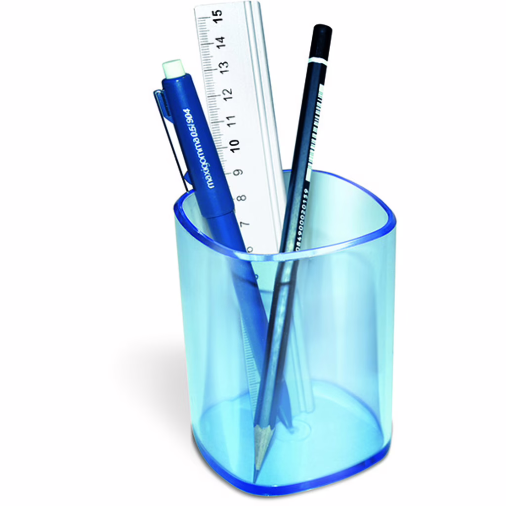 Bicchiere portapenne trasparente azzurro