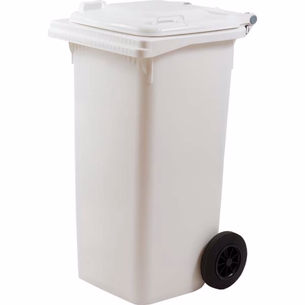 Bidone per raccolta differenziata in polietilene alta densità di prima scelta con presa a pettine. Provvisti di ruote, coperchio e manico per il trasporto. Resistenti agli agenti chimici e lavabili, ideali HACCP. Impermeabili, resistenti al gelo, al calore e ai prodotti chimici