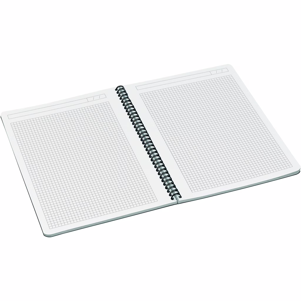 Blocco notes A4 con rilegatura a spirale metallica laterale. Copertina in cartone laminato flessibile, leggera ma di lunga durata. Microperforato con un'apertura per facilitare lo strappo. Carta certificata FSC® da 80 grammi.