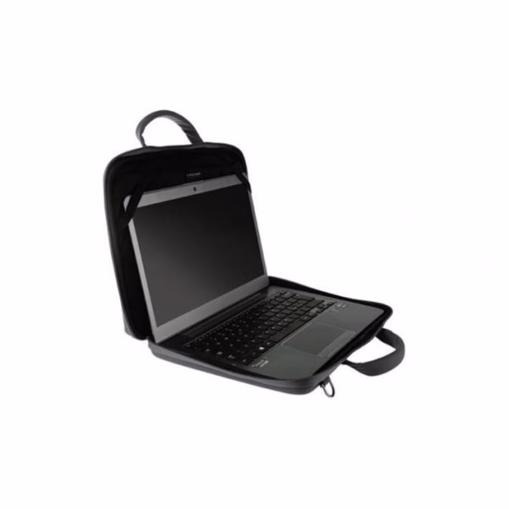 Borsa slim ed iperprotettiva, per Laptop fino a 14”, dotata di lato posteriore semirigido. Il comodo vano interno, raggiungibile attraverso l’apertura della zip sui tre lati della borsa, permette di lavorare con il proprio device fissando le estremità con due elastici angolari. In dotazione tracolla imbottita e removibile.