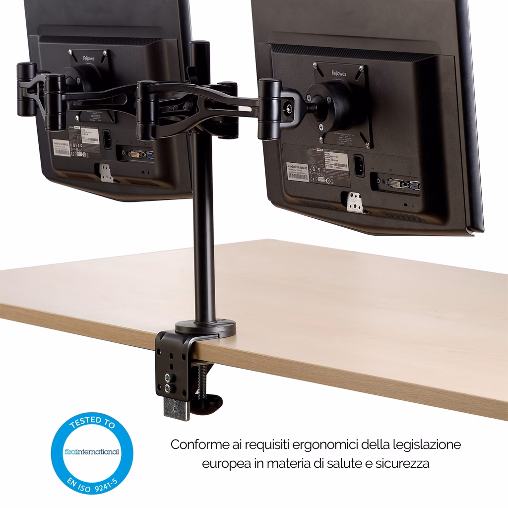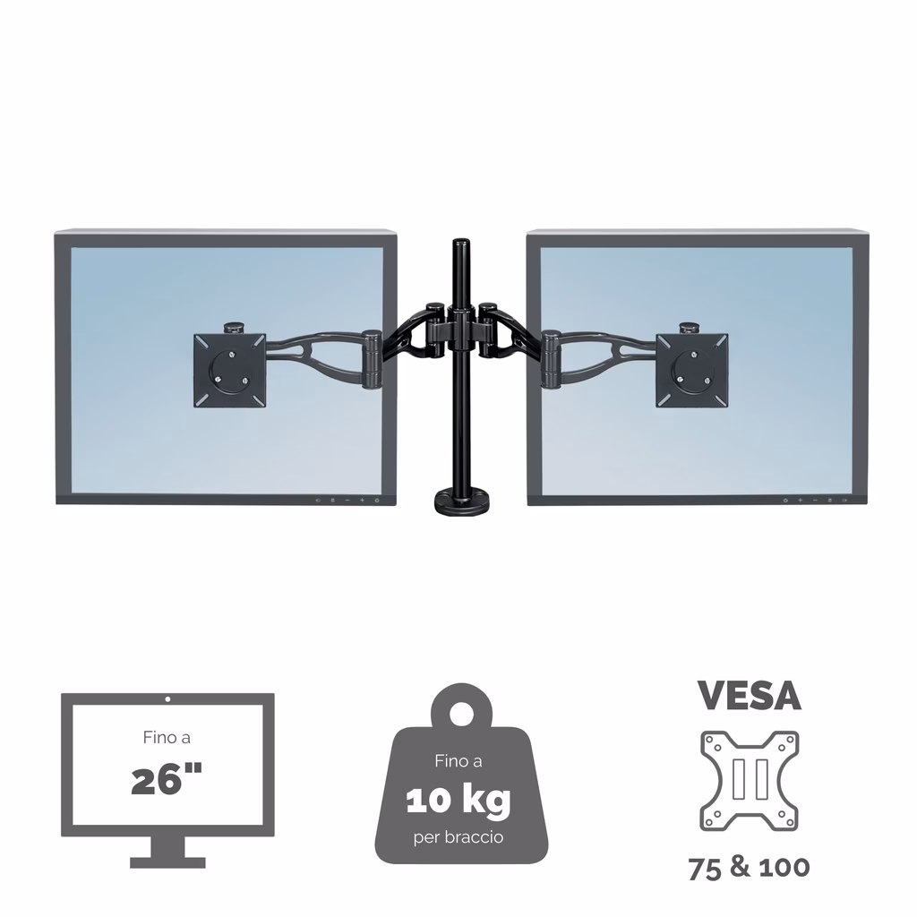 Braccio monitor Fellowes doppio nero, Reflex Fino a 26"