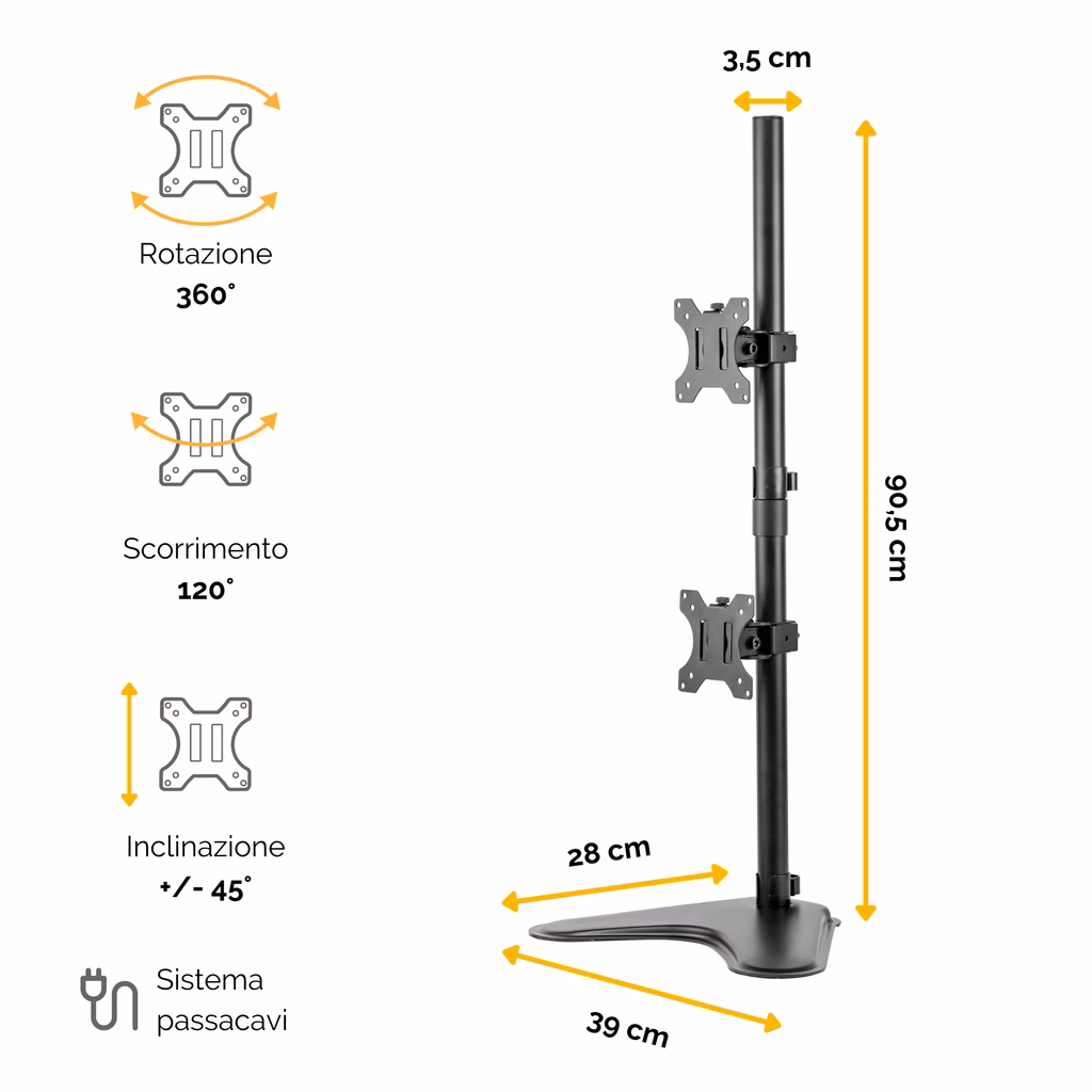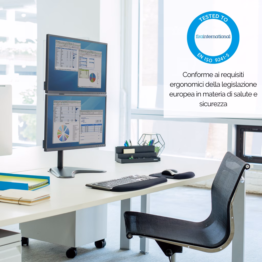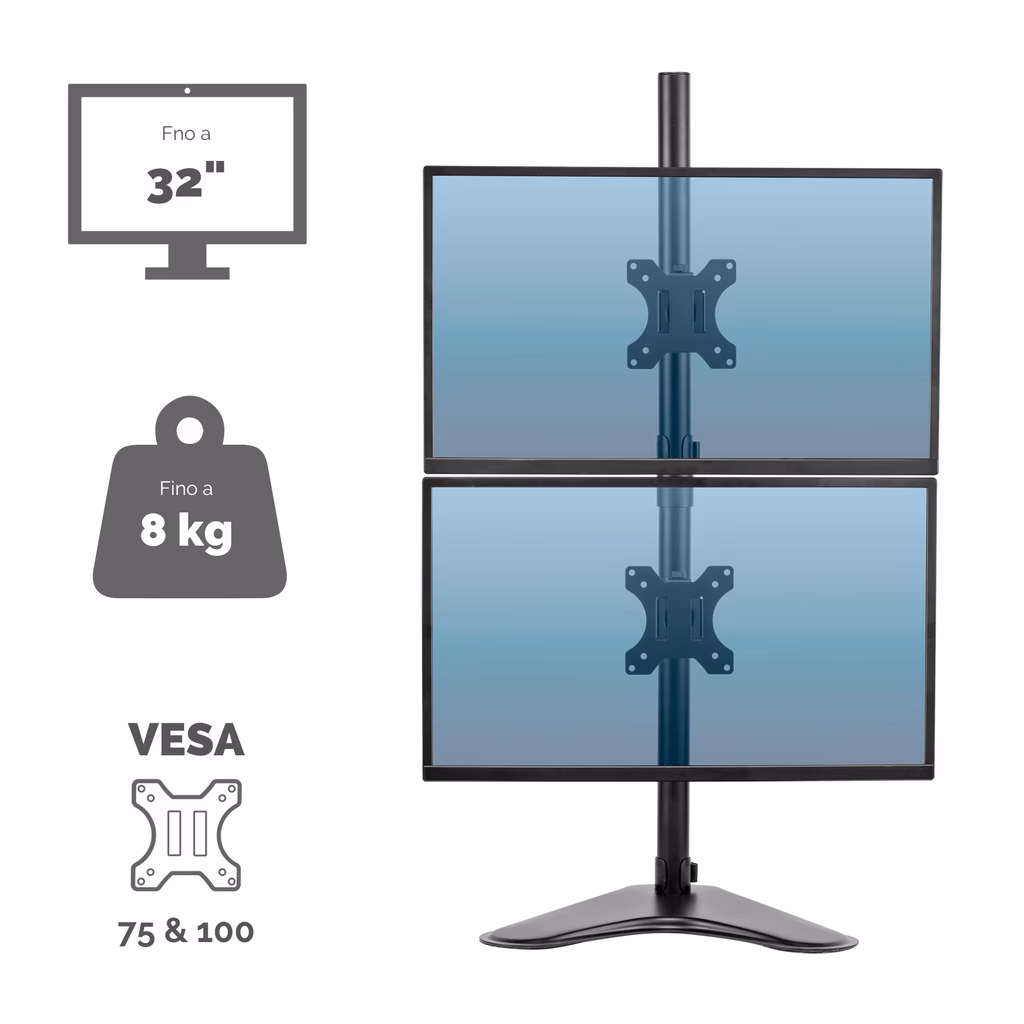 Braccio monitor Fellowes doppio verticale con piedistallo, Seasa, Nero, Fino a 26"
